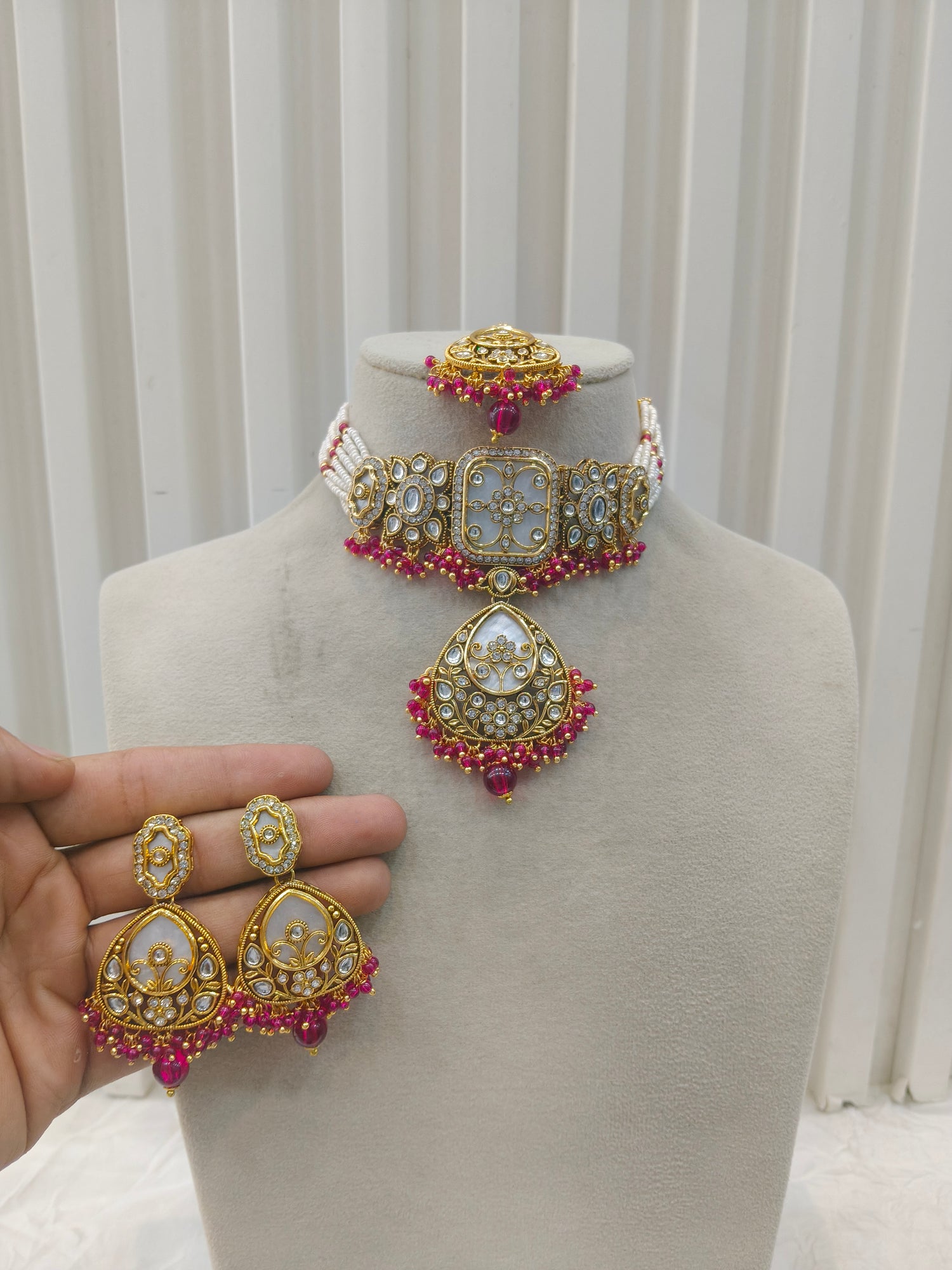 Indian Jewellery Majenta Kundan choker Aanya Sets