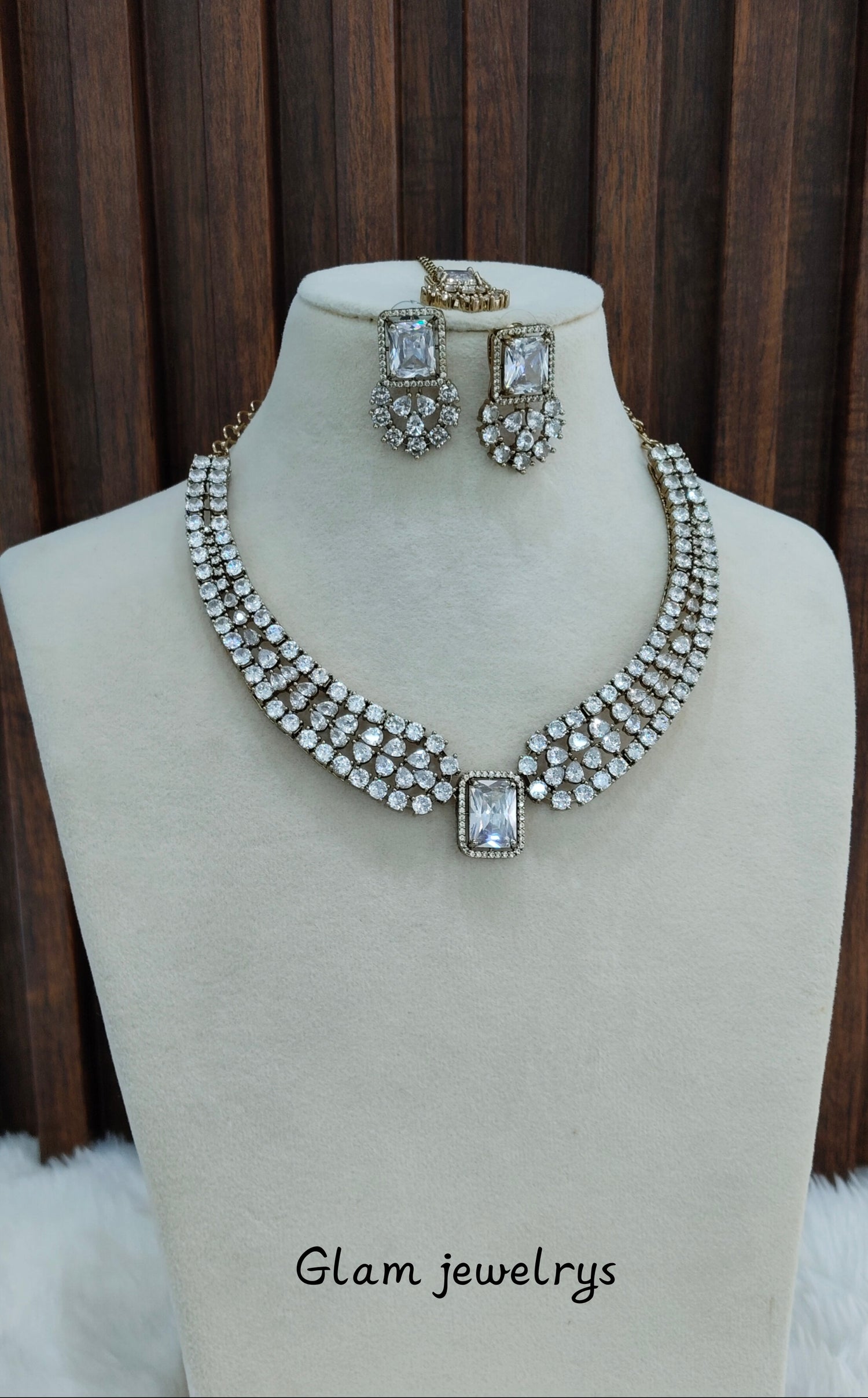 American Diamond Necklace Jewellery set, Rose ruby layered necklace set CZ chart necklace set