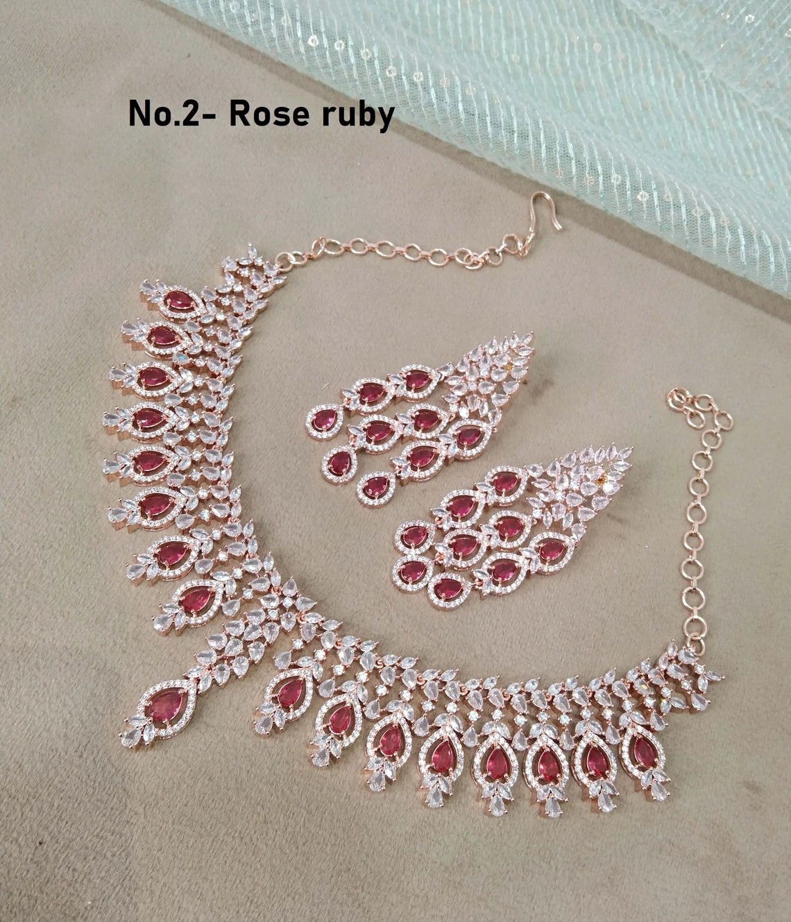 American Diamond Necklace Jewellery set, Rose ruby layered necklace set CZ chart necklace set
