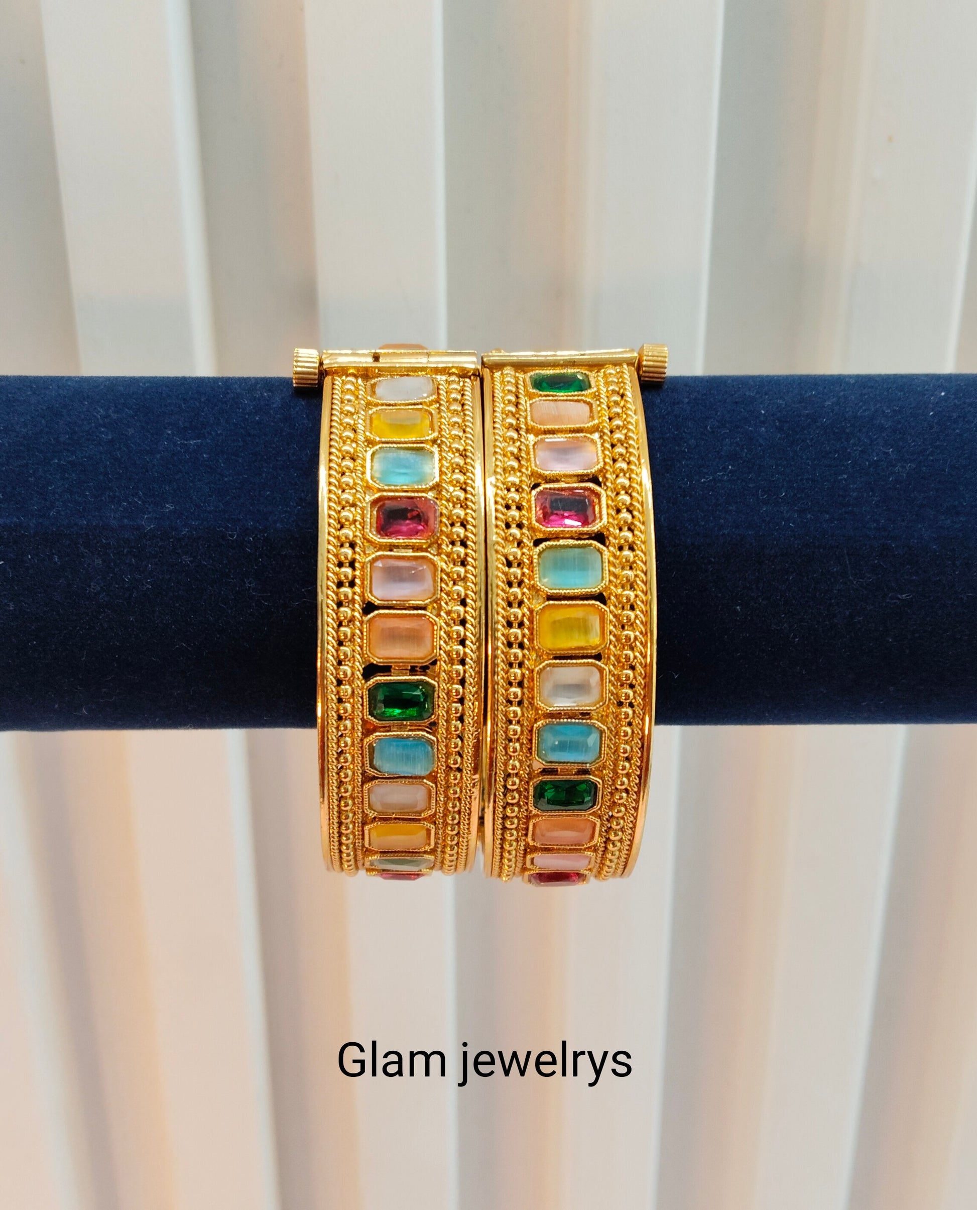 2.4 Size Indian bangles jewelry /Traditional bollywood jewelry/Multi Color Screrw Gold bangles