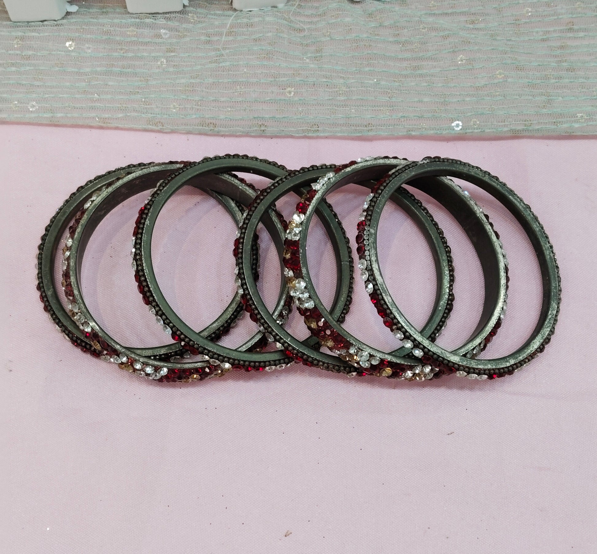 2.6 Size Indian bangles jewelry /Traditional bollywood jewelry/Silver Maroon Antique bangles