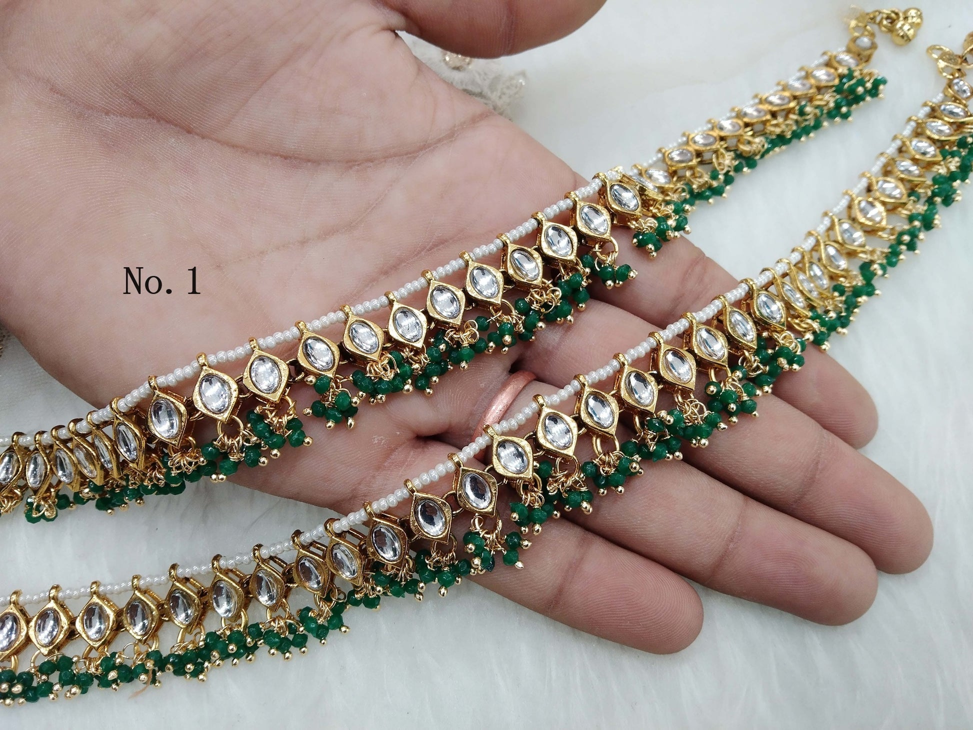 - Adjustable light weight kundan pair of anklets/payal jewelry.