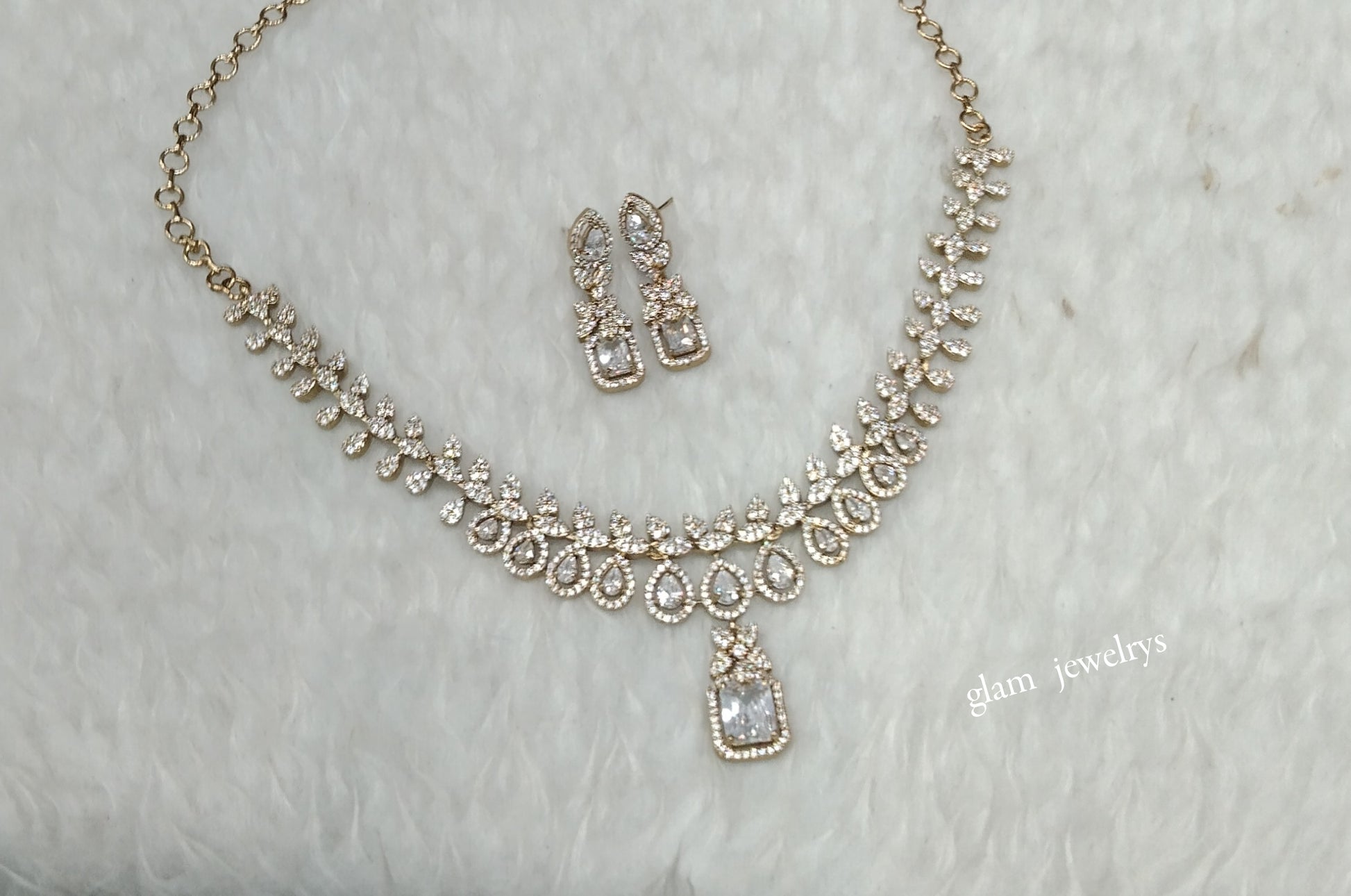 Antique White American Diamond AD Emery Necklace Set /Indian Necklace Sets