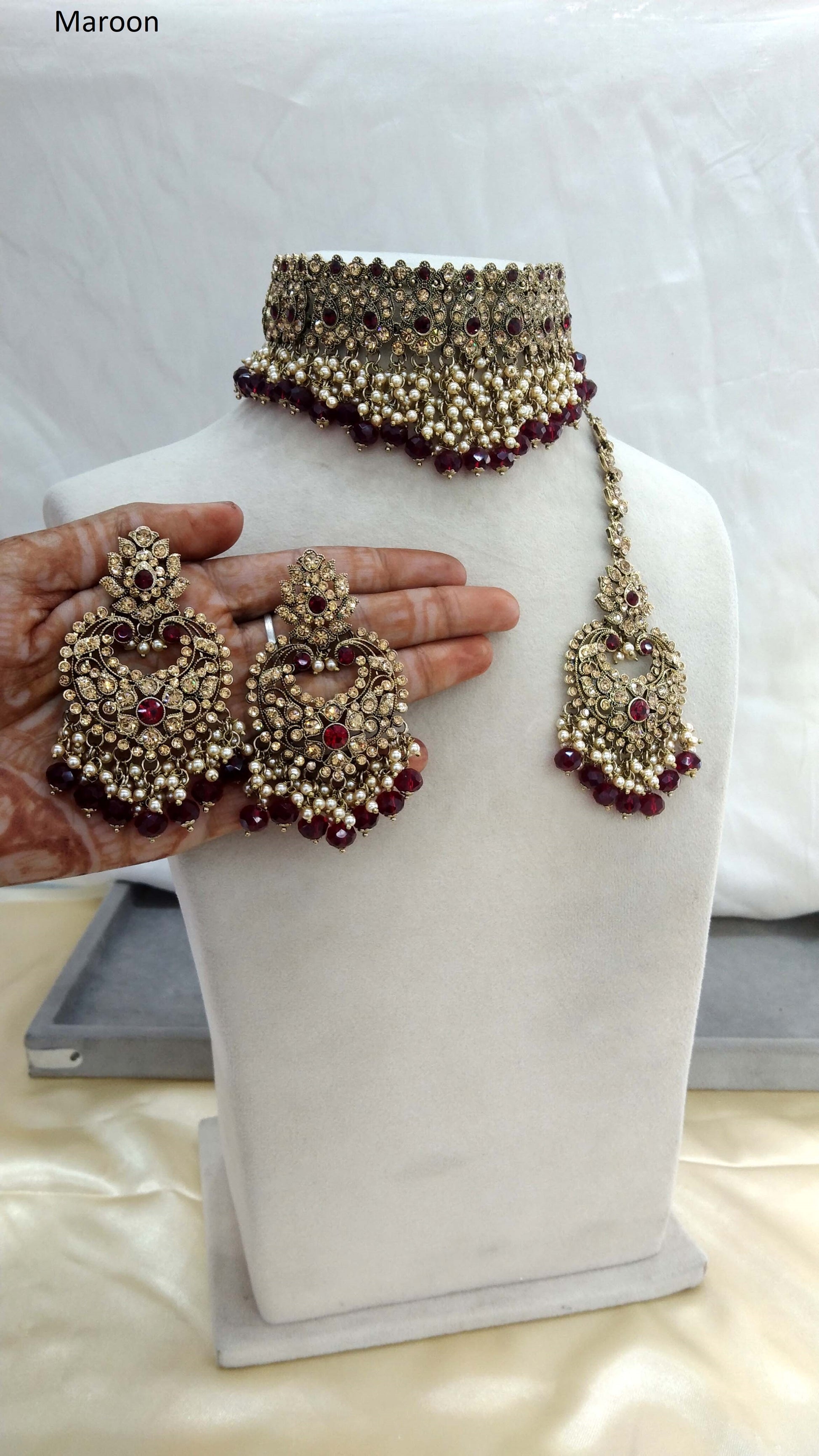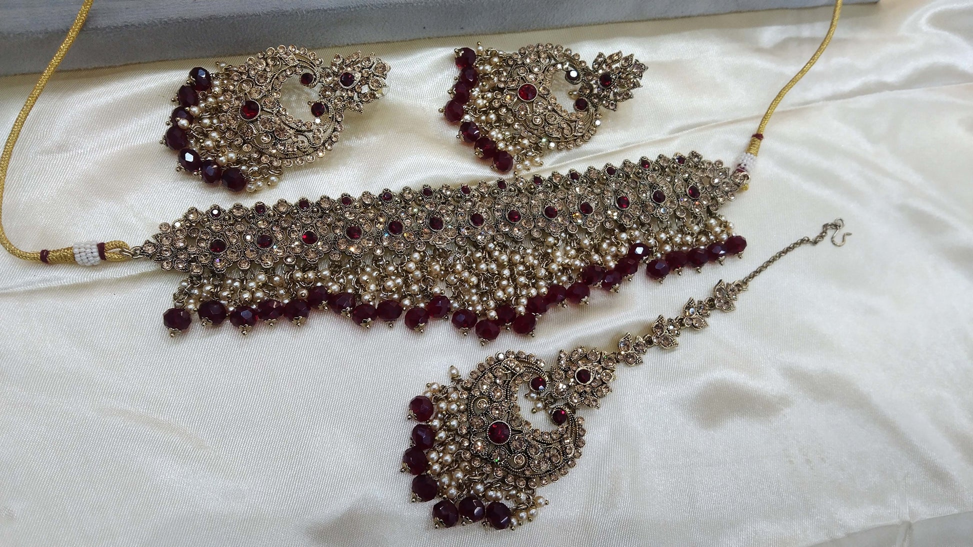 Antique Gold choker Set/ Indian Antique Gold Maroon choker siraj Jewellery