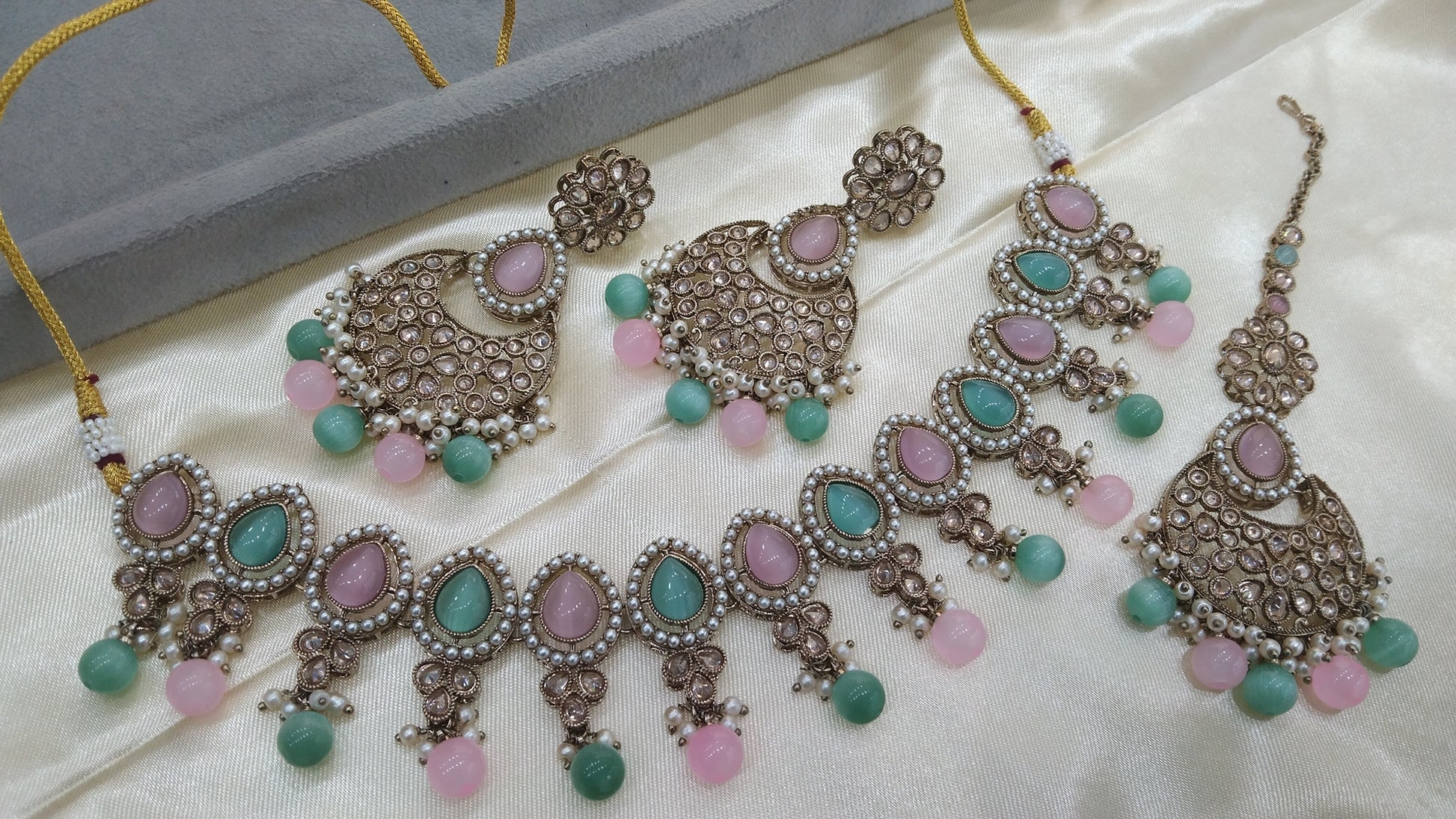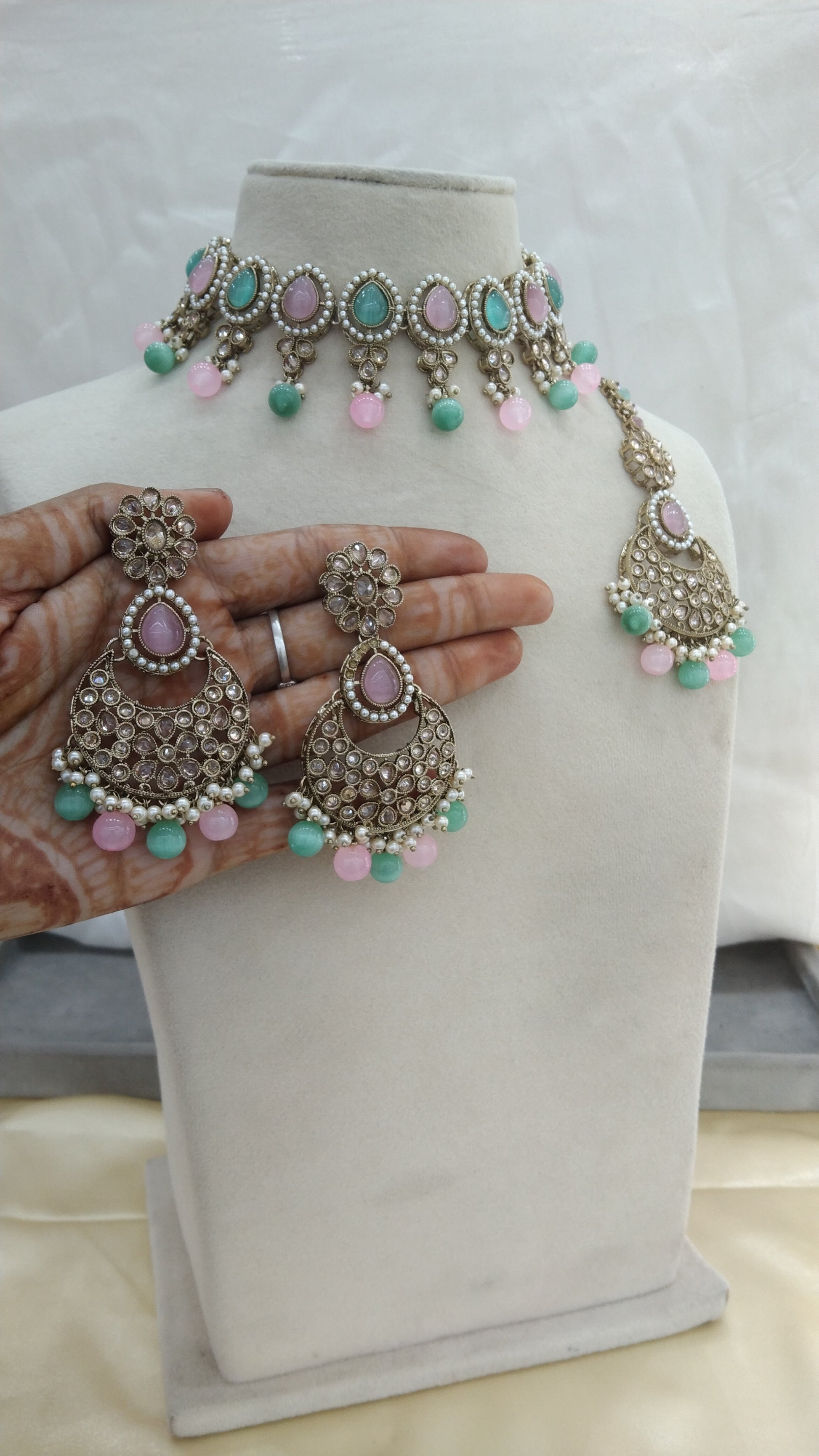 Indian Jewellery Pink Kundan Choker Set/ kundan choker hello Set