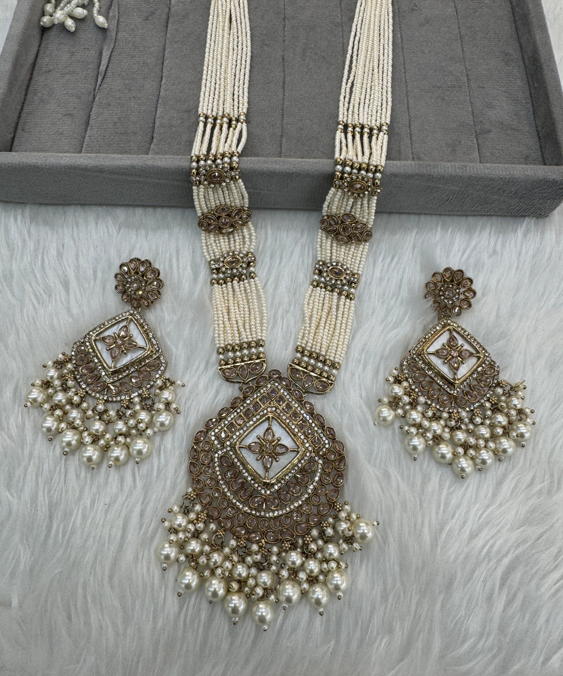 Antique Gold Kundan Long Rani Haar Necklace Indian Jewellery Set
