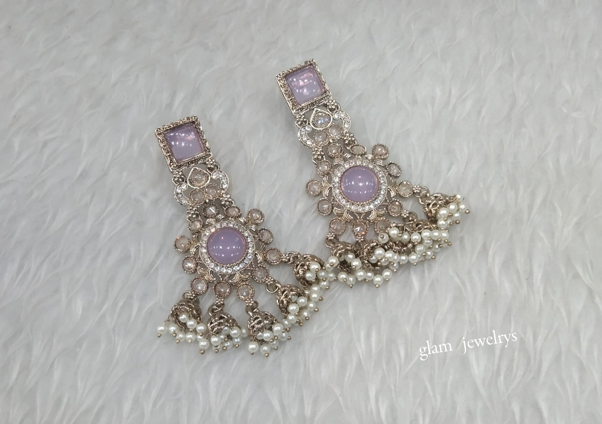 Antique Gold Lavender Bollywood Indian Louka Earrings