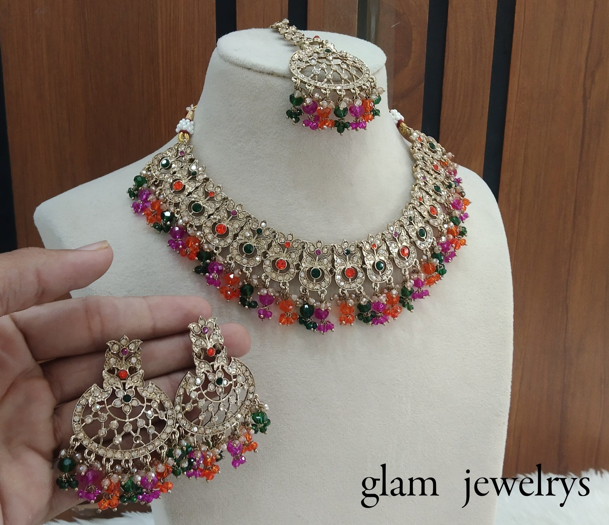 Gold multicolor Kundan necklace Set/ Gold kundan Indian jewellery kundan runes sets