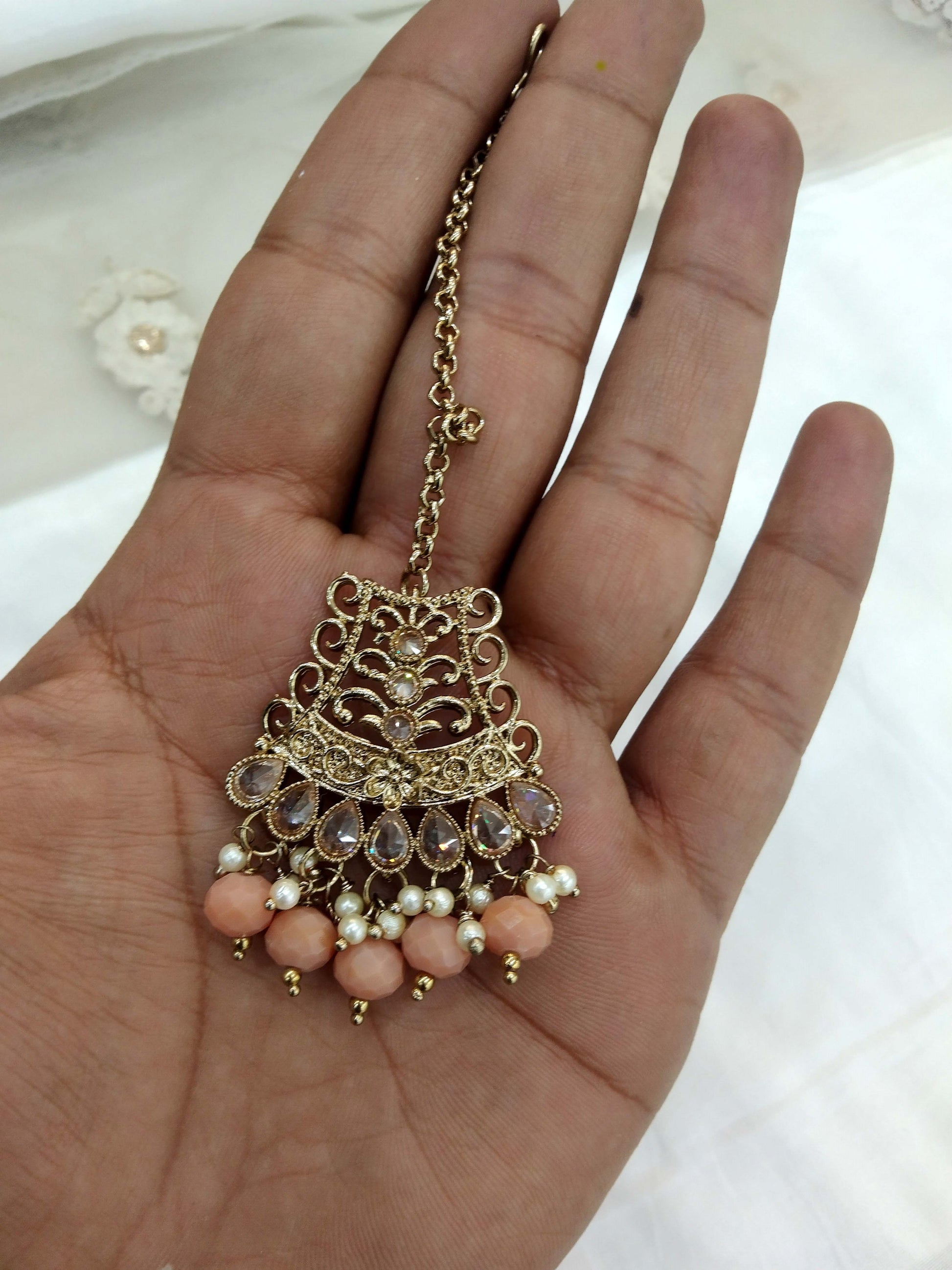 Antique Gold Peach polki Tika Tikka Jewellery Indian Headpiece Tikka Jewellery