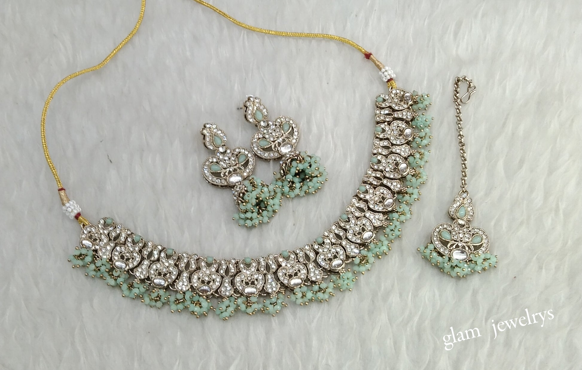 Pastel Green Bridal Necklace Jewellery Kadir Set
