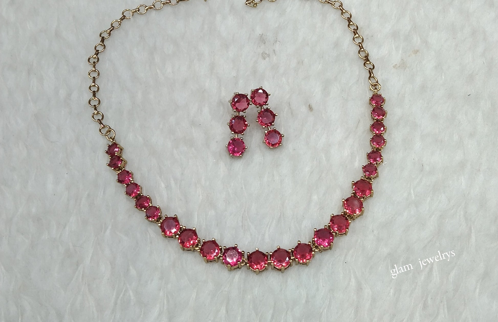 Antique Ruby American Diamond AD Geet Necklace Set /Indian Necklace Sets