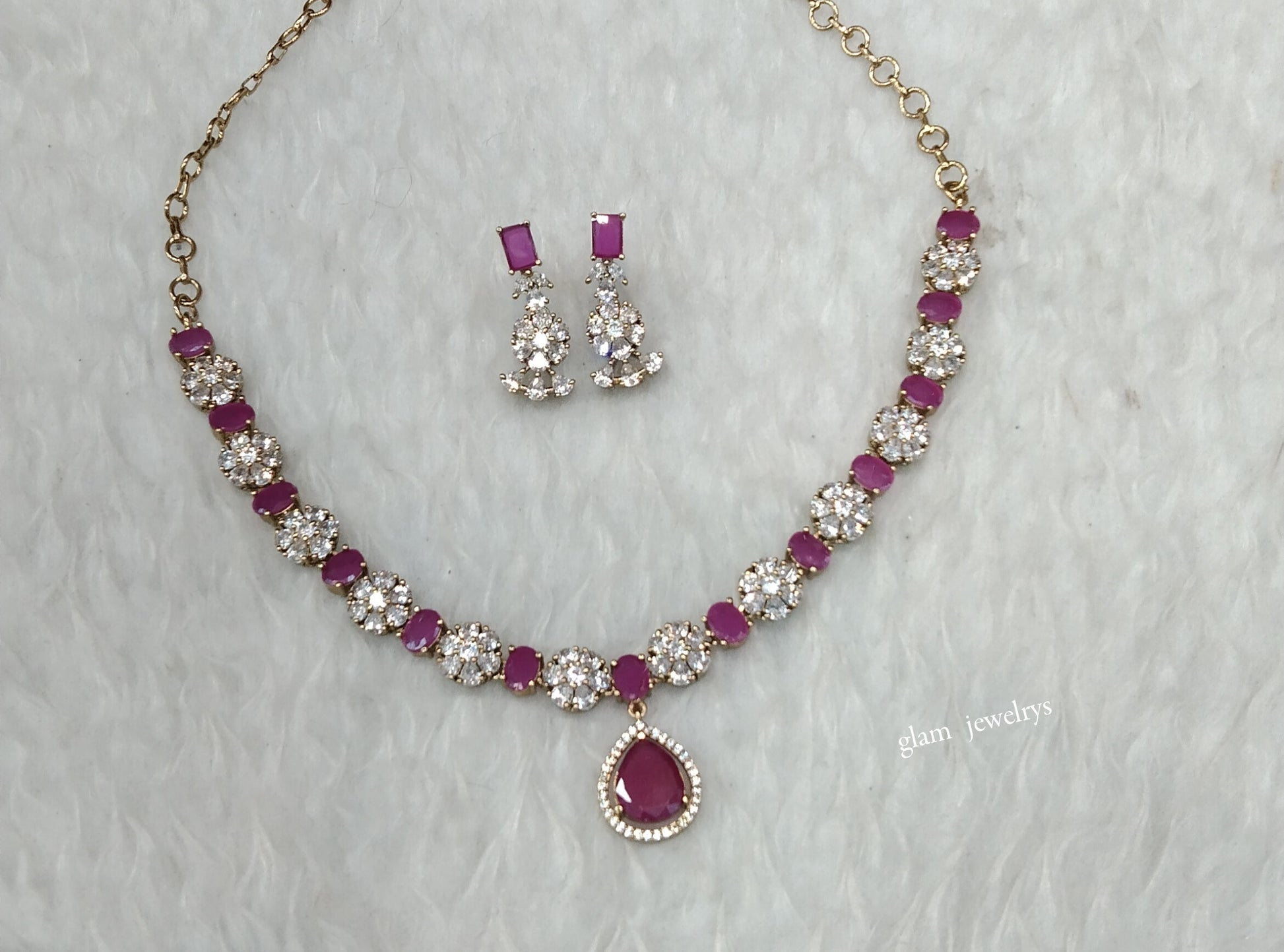 Antique Ruby American Diamond AD Geeta Necklace Set /Indian Necklace Sets