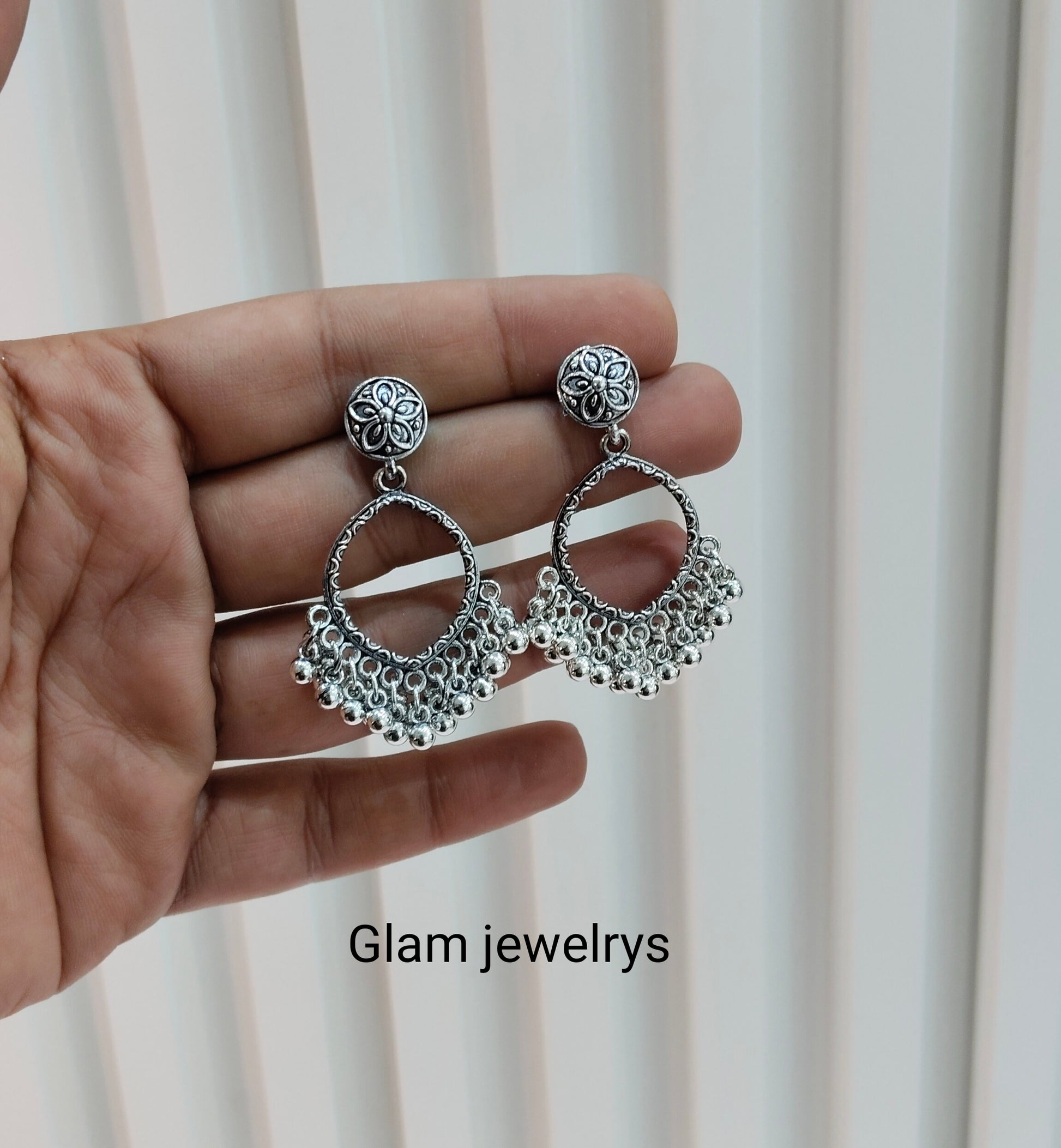 Antique Silver Oxidized Metal Professor Indian Earrings Set