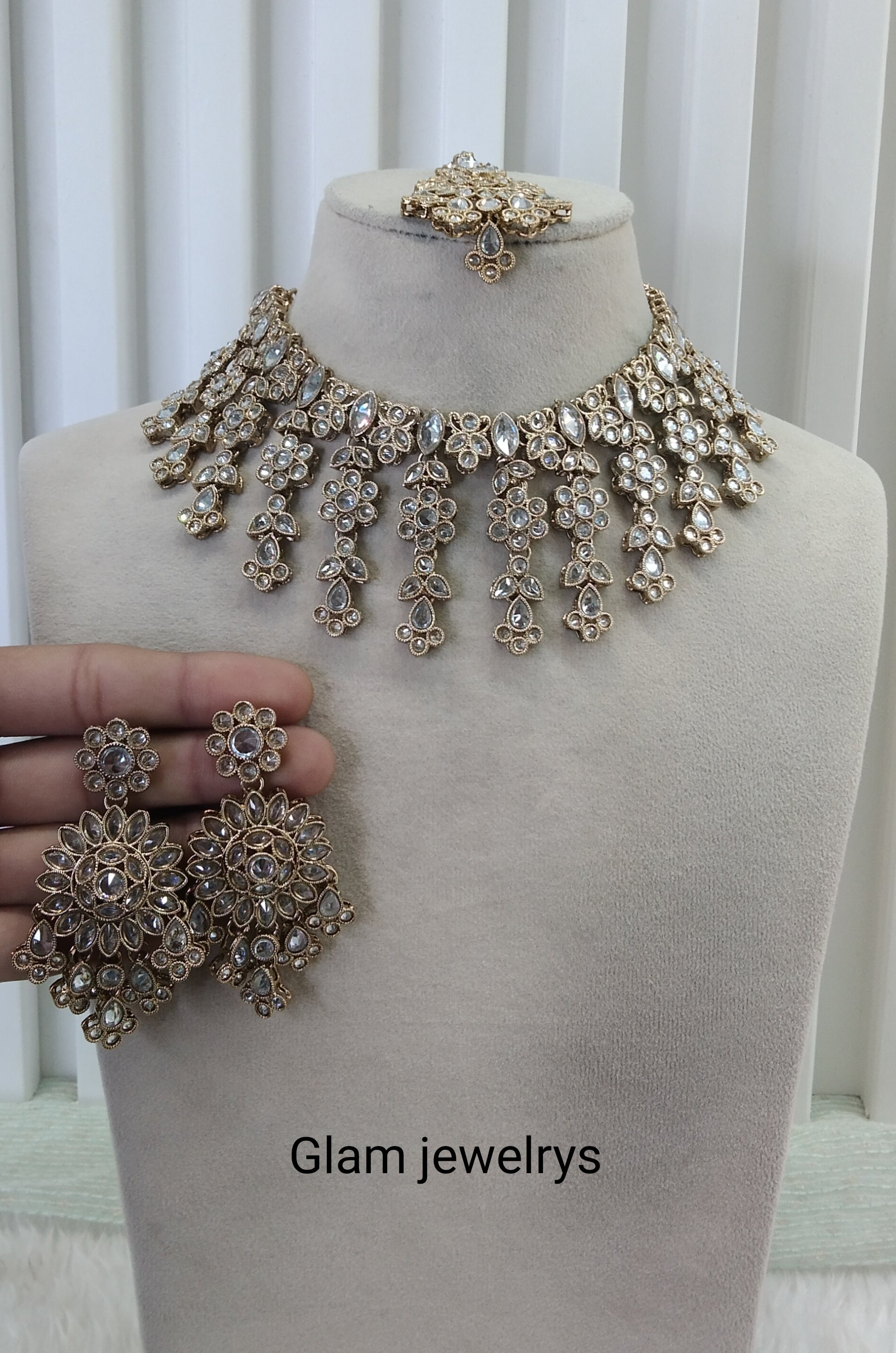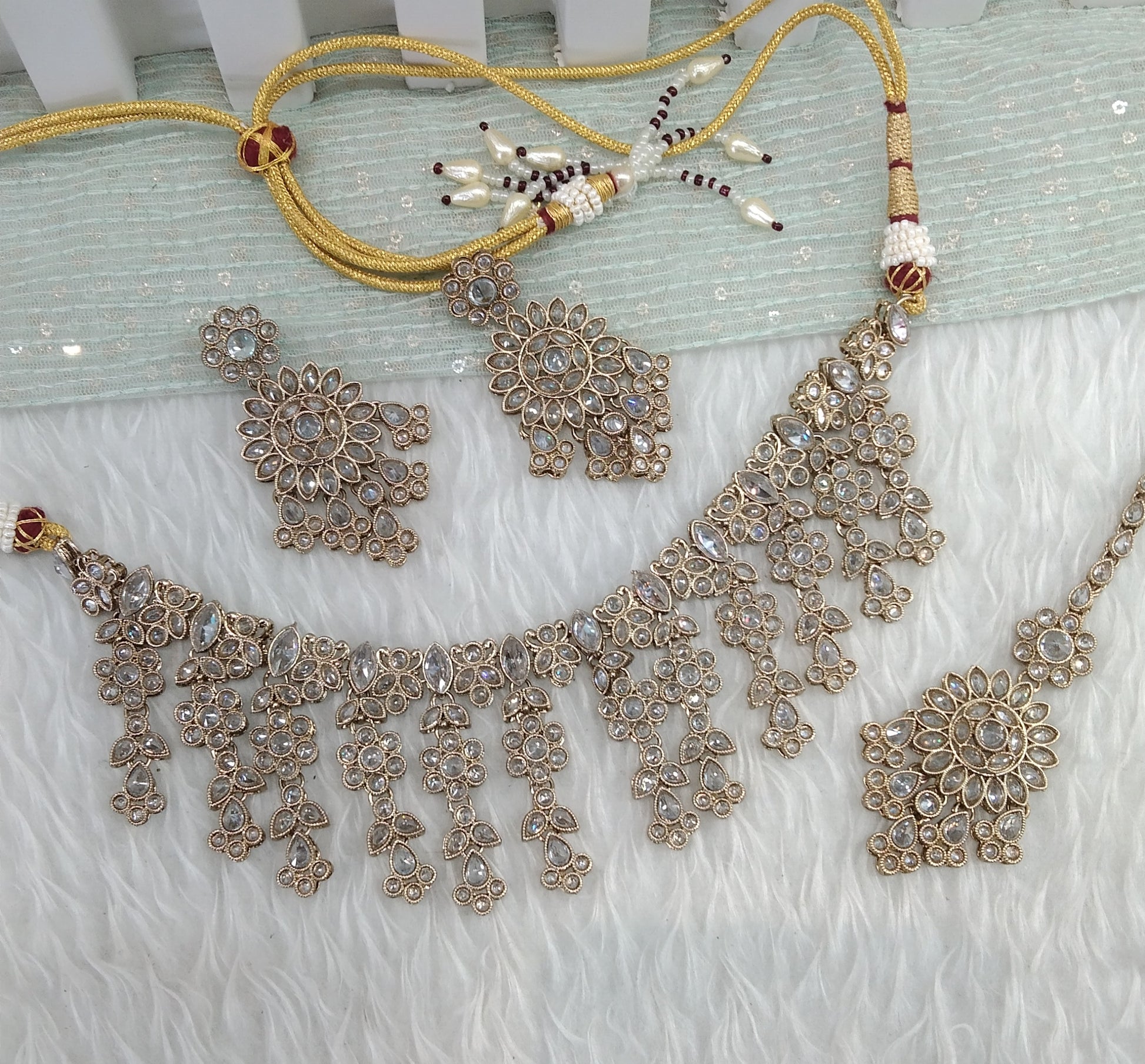* Champagne Stone Necklace Set with earrings as shown in the pic.