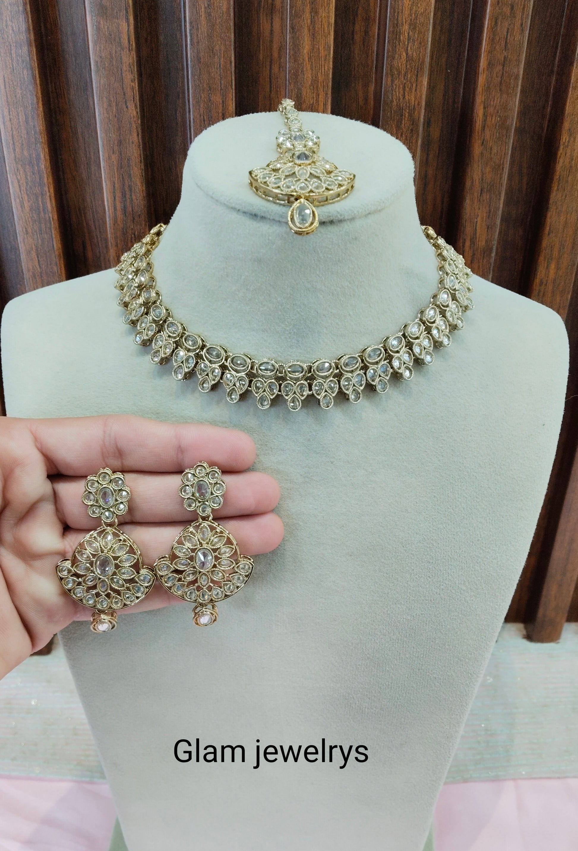 Indian Jewellery Pink Kundan Choker Set/ kundan choker hello Set
