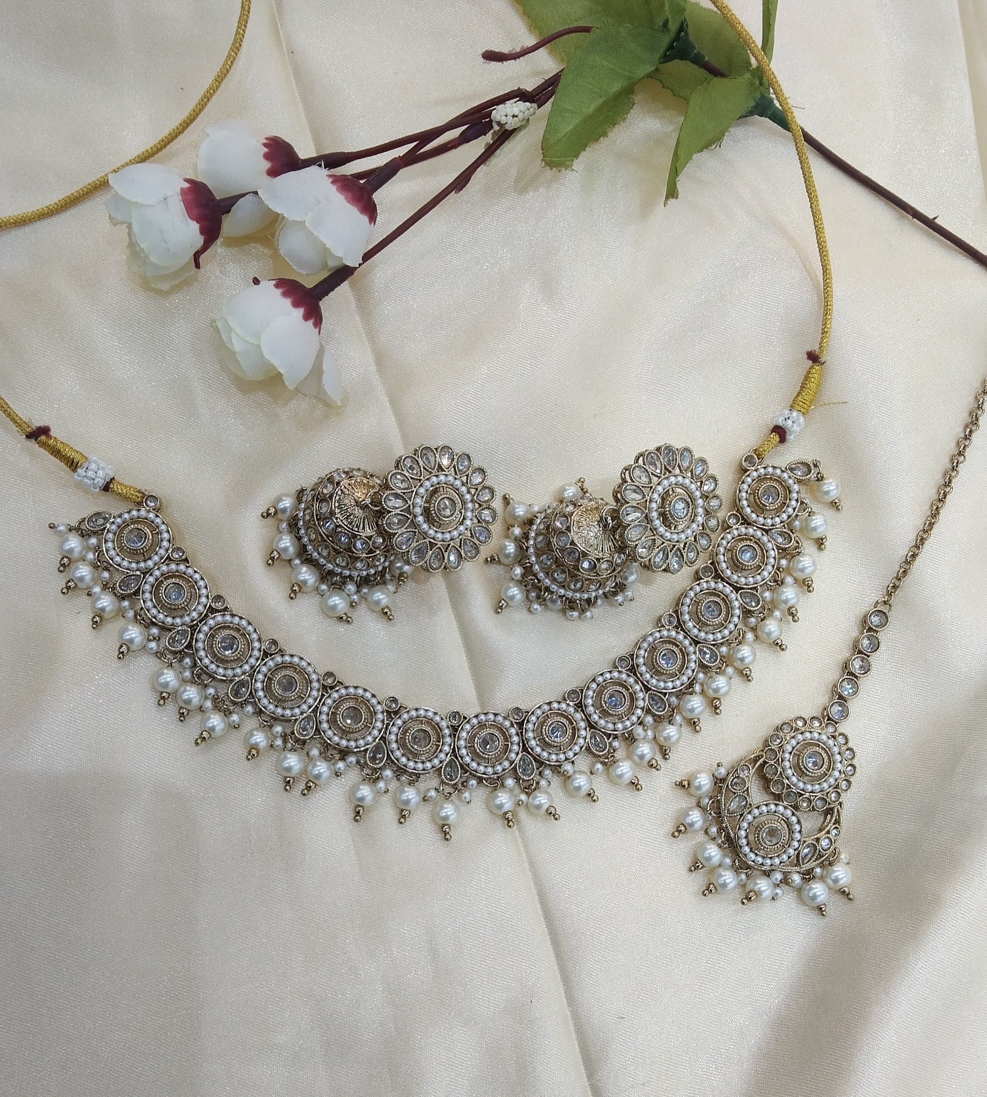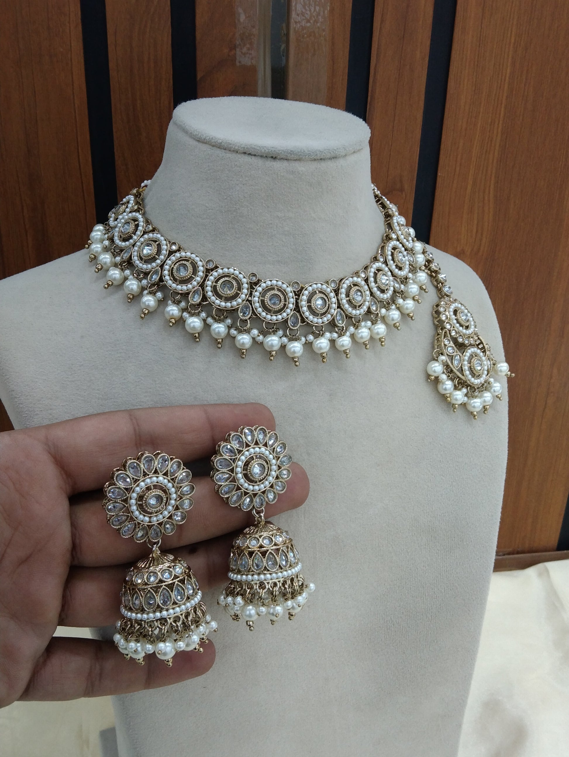 *Light weight gold necklace Set with earrings Tikka as shown in the pic.