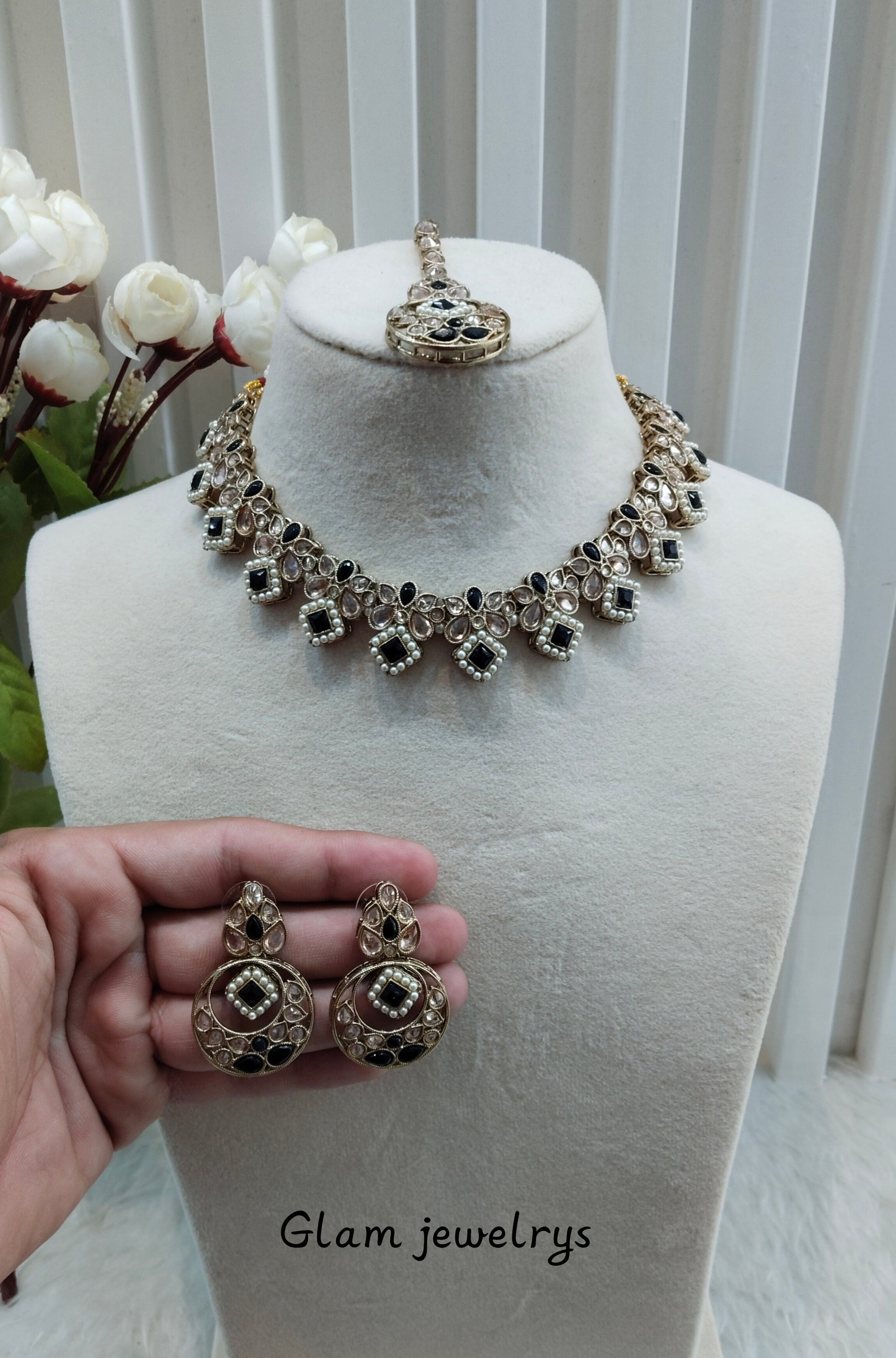 *Necklace set with earrings and tikka.