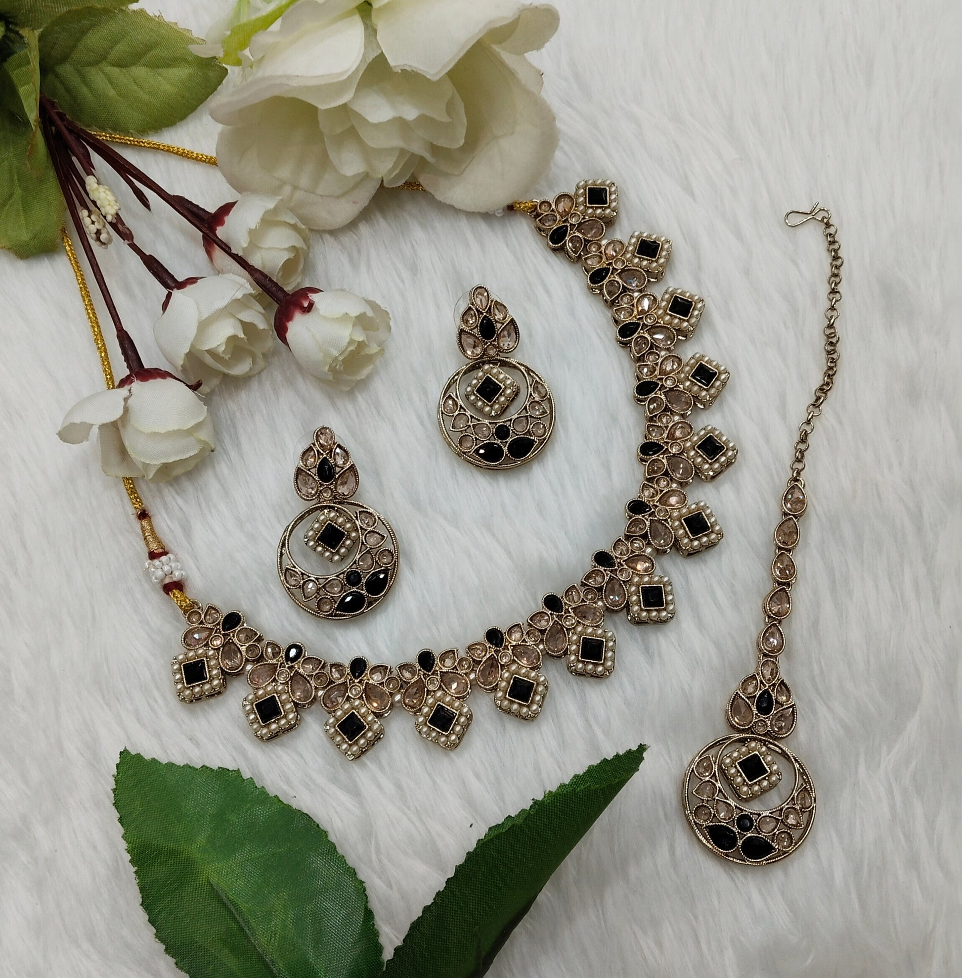 Black Antique Gold Necklace Indian Jewellery Race Set