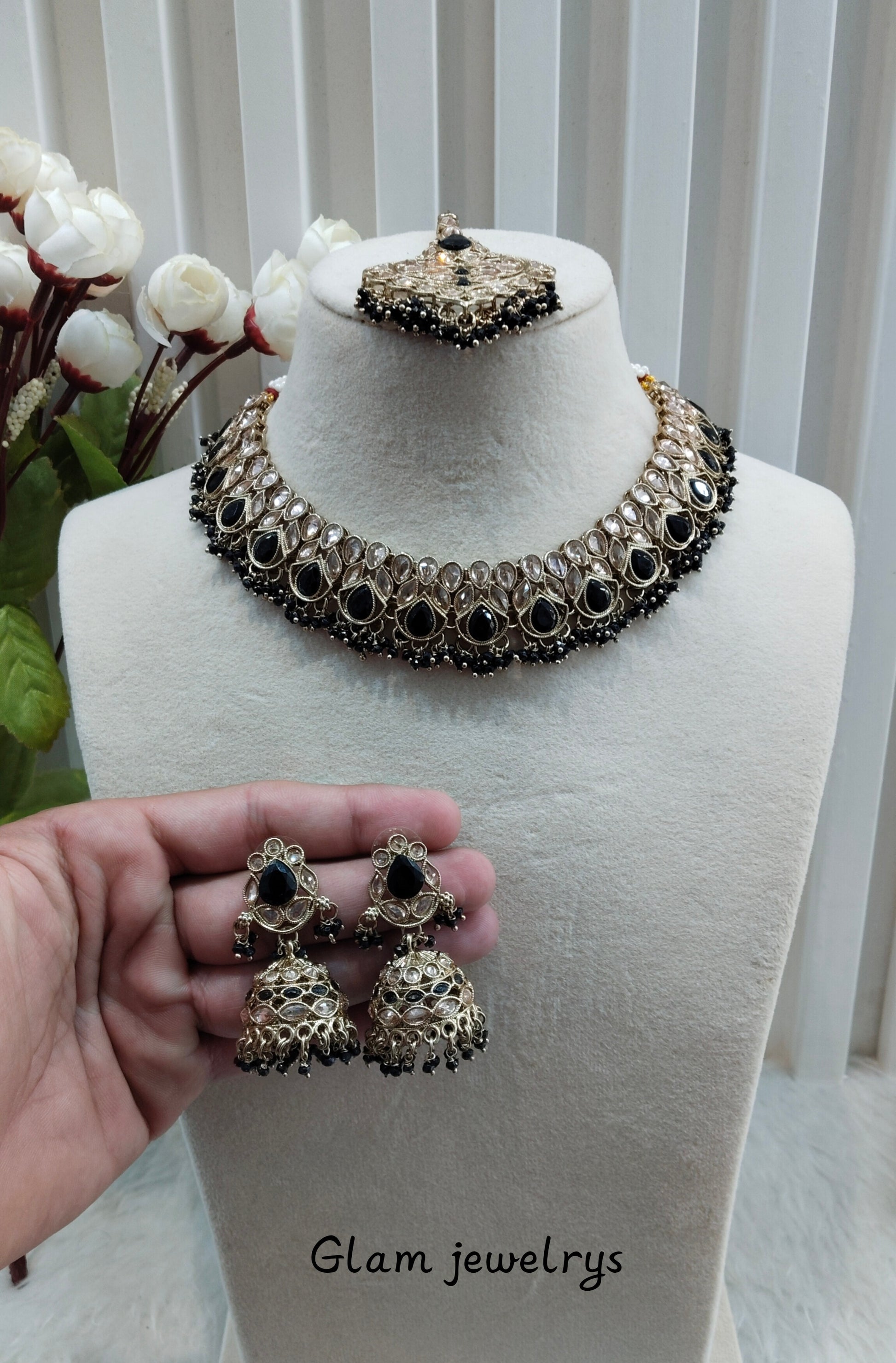 Black Antique Gold Necklace Indian Jewellery Topply Set