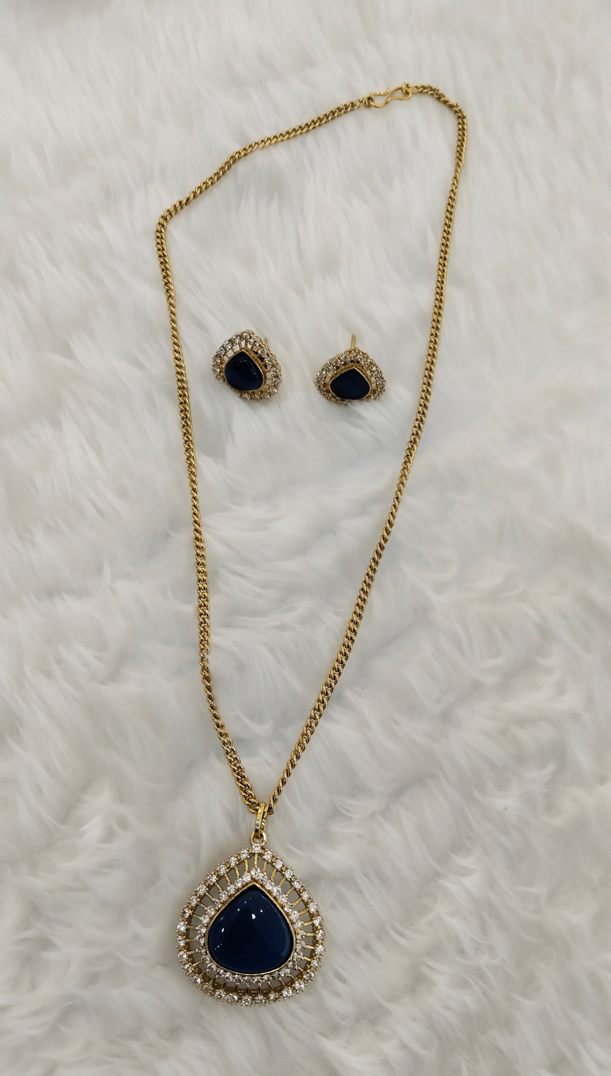 Blue Gold Moissanite Kundan Necklace Indian Jewellery Avenger Chain Set