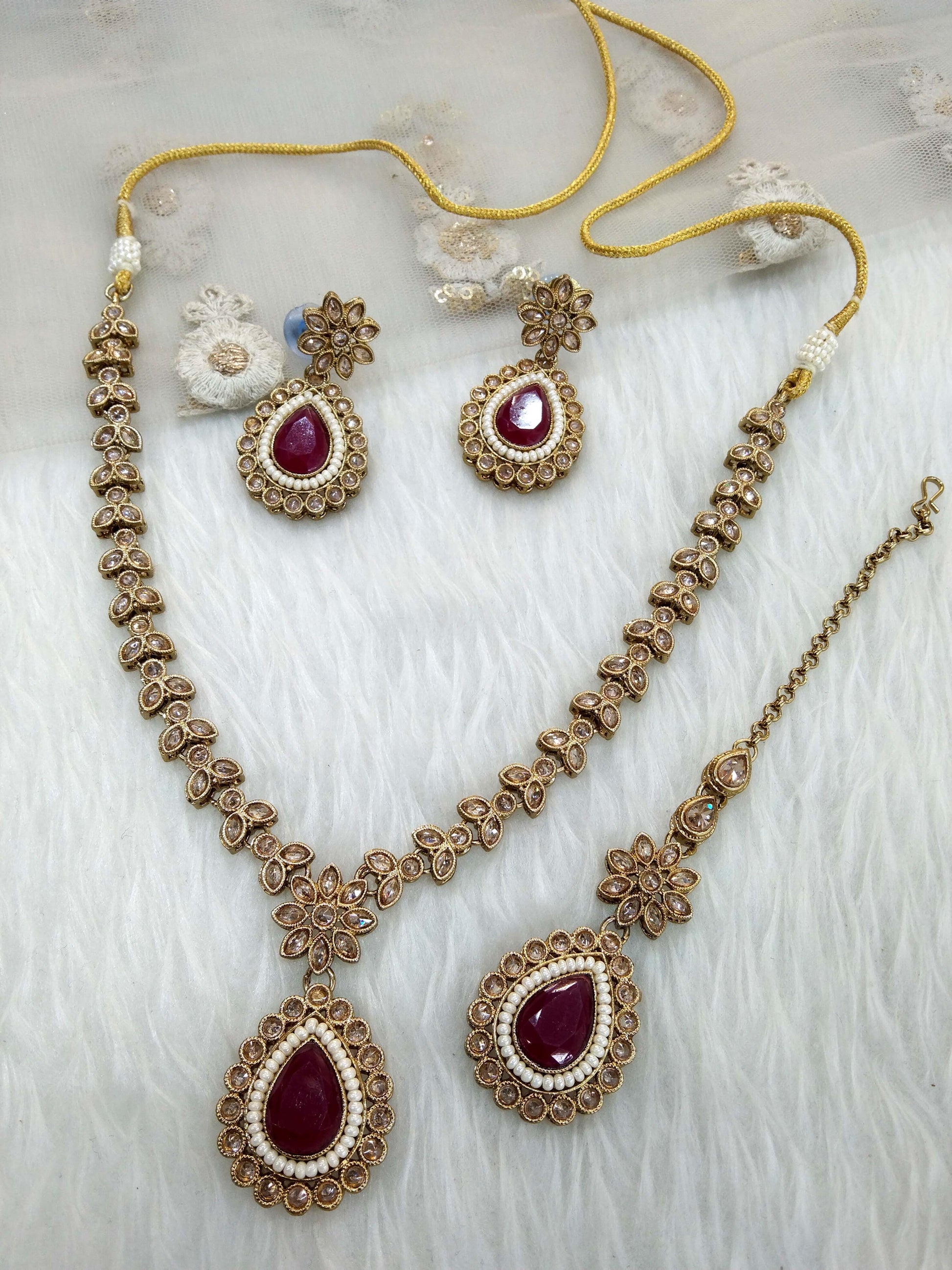 Maroon indian jeweller Antique gold necklace set/ necklace Indian rishi jewellery set
