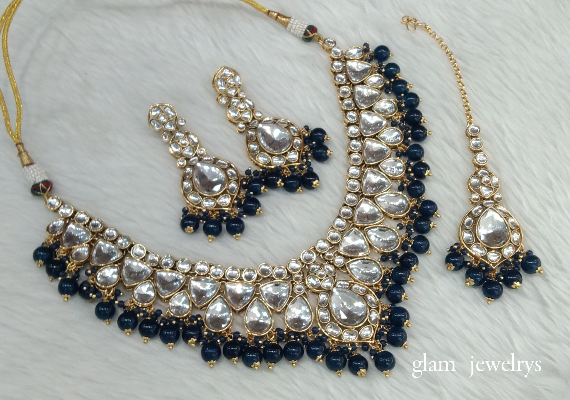 Blue Kundan necklace Set/ kundan Indian jewellery Mekha sets