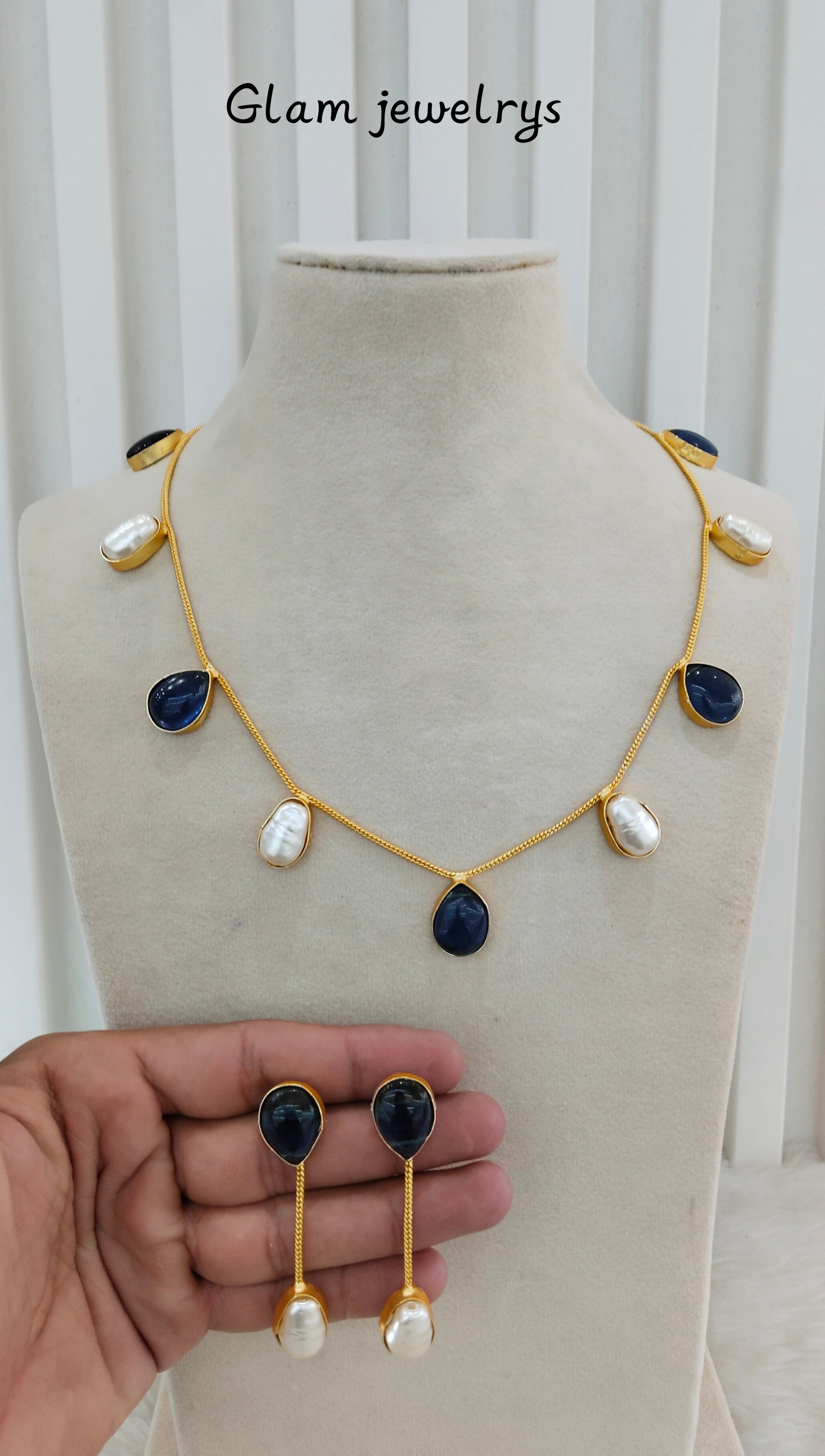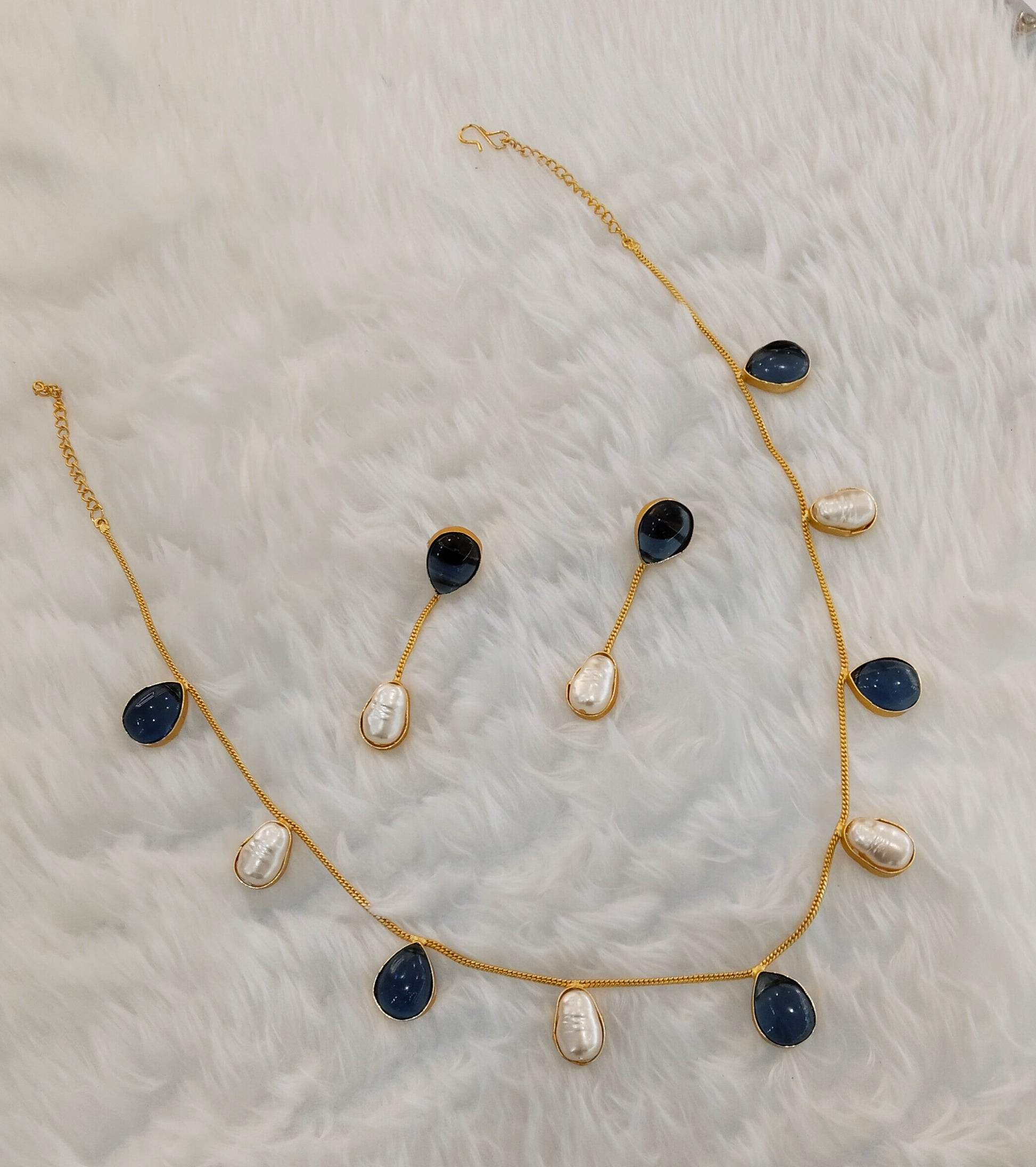Blue Mother Of Pearl Stone Necklace Indian Jewellery Sagge Set