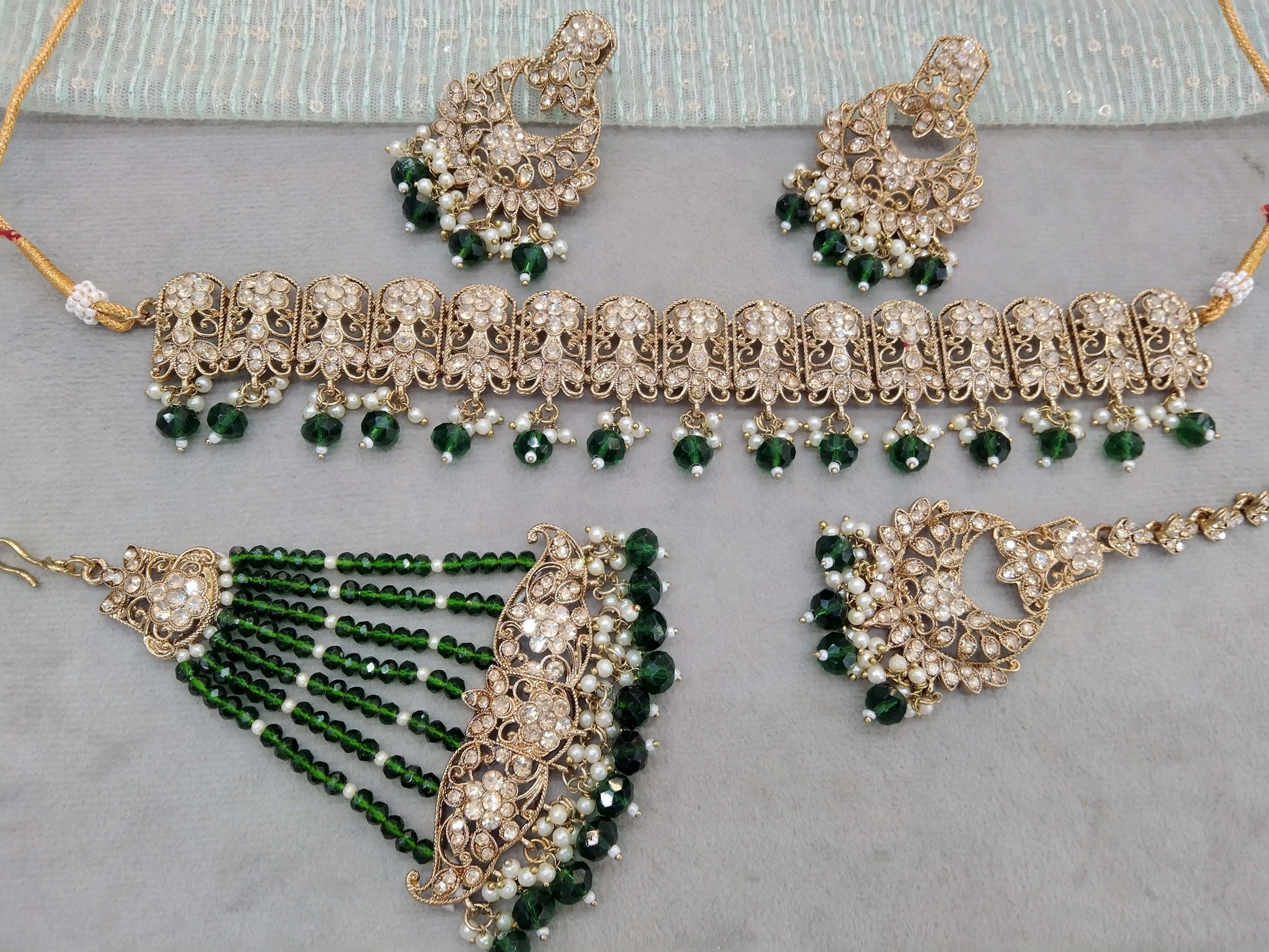 Choker Set / Green Choker Jewellery set with Jhumar /Indian Tejasvi choker set