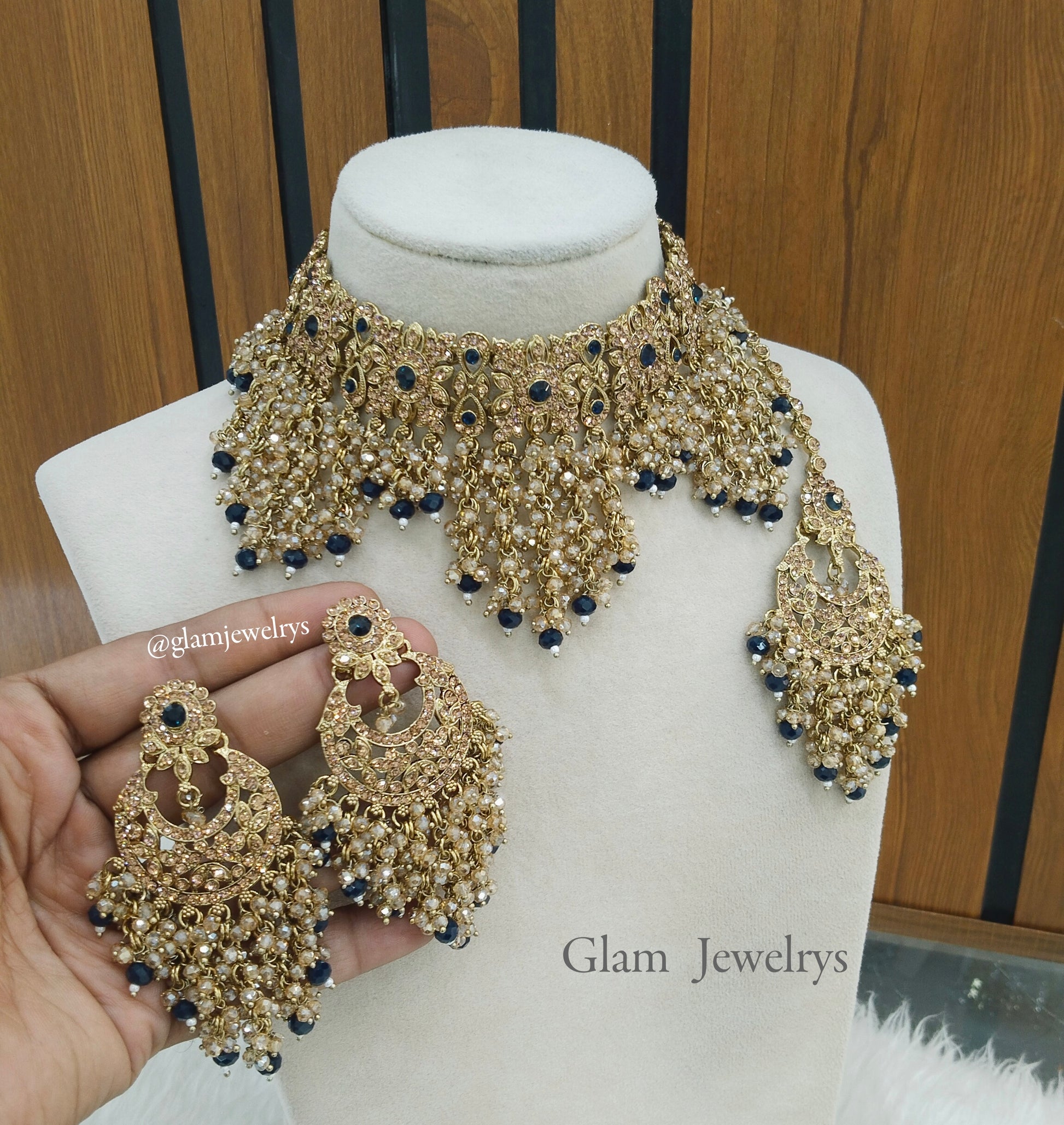 Dark Blue Choker Set Indian Choker Siraj Jeweller