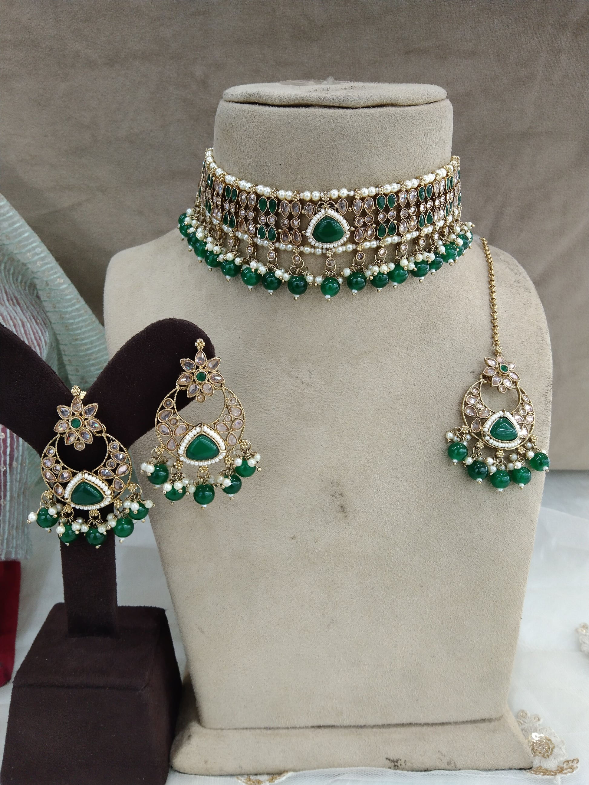 Antique Gold Green choker Set/ dark gold choker Indian trenton Jewellery