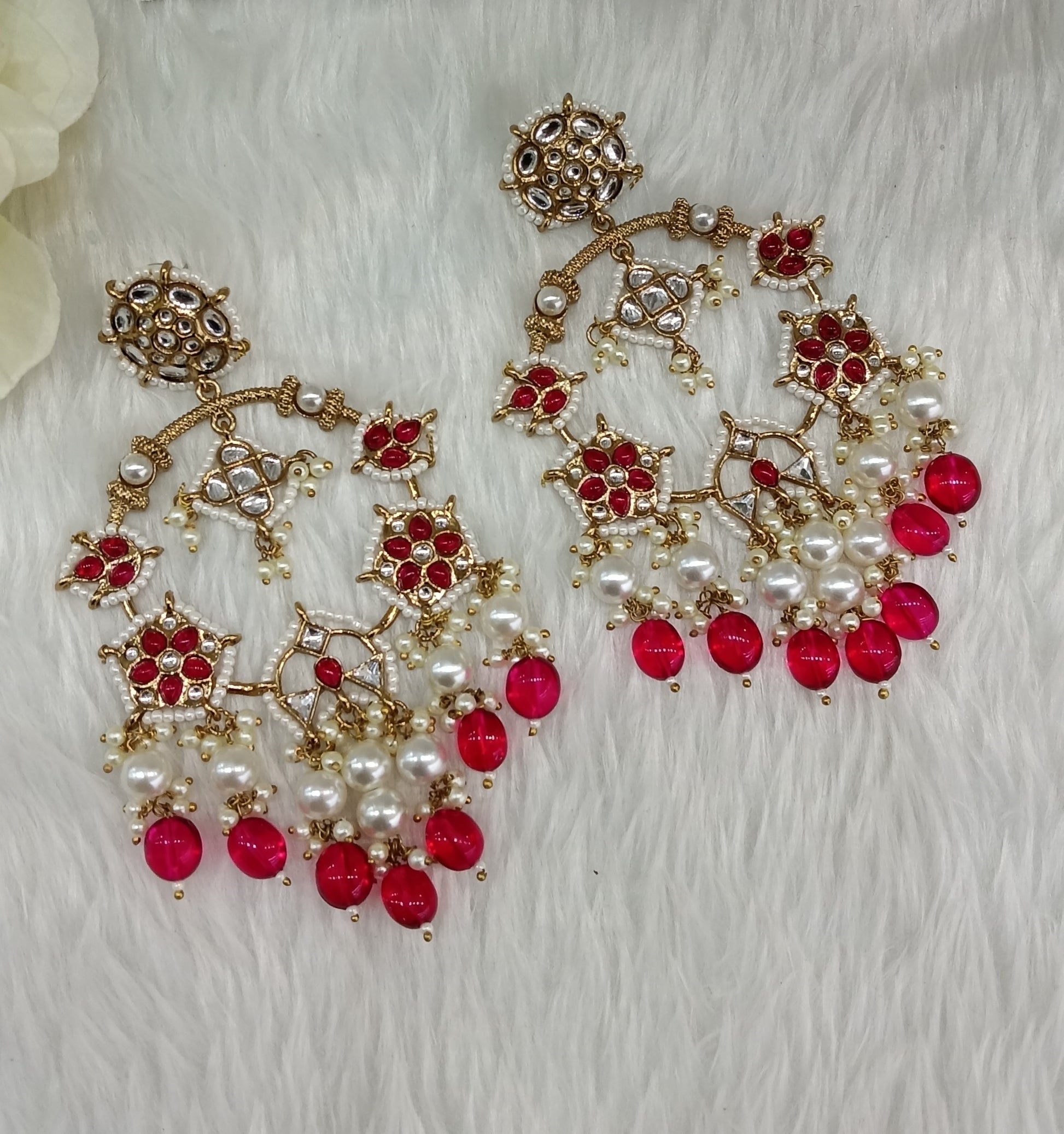 Dark Pink Kundan Bollywood Indian Pargat Earrings