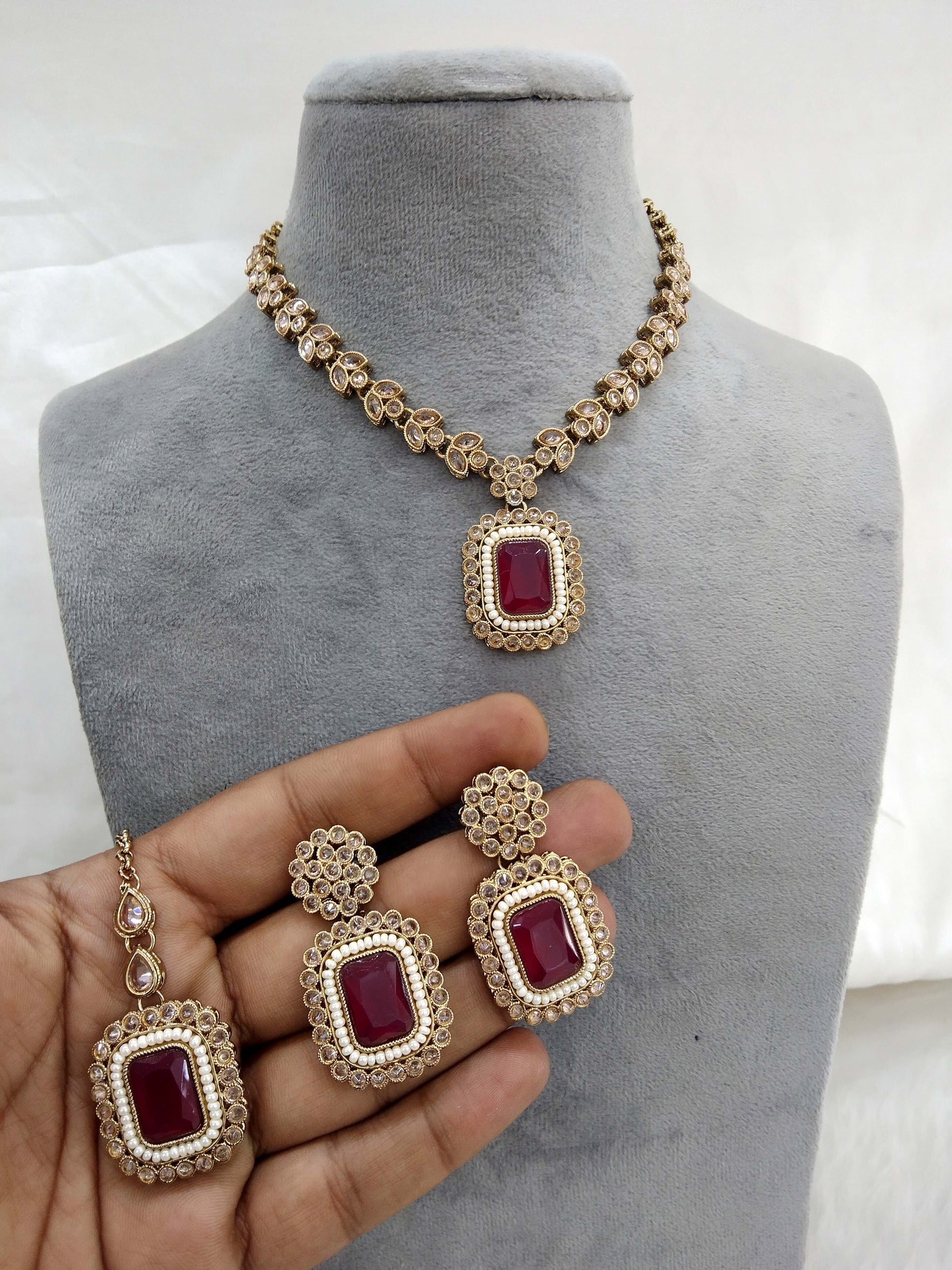 Indian jewellery Maroon necklace set/ necklace Indian rishi jewellery set