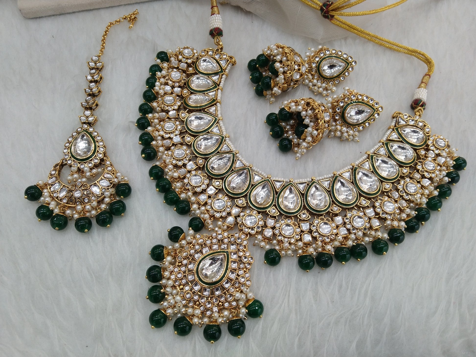 Green Kundan Necklace Jewellery Set/ Gold kundan Indian jewellery kundan kity sets