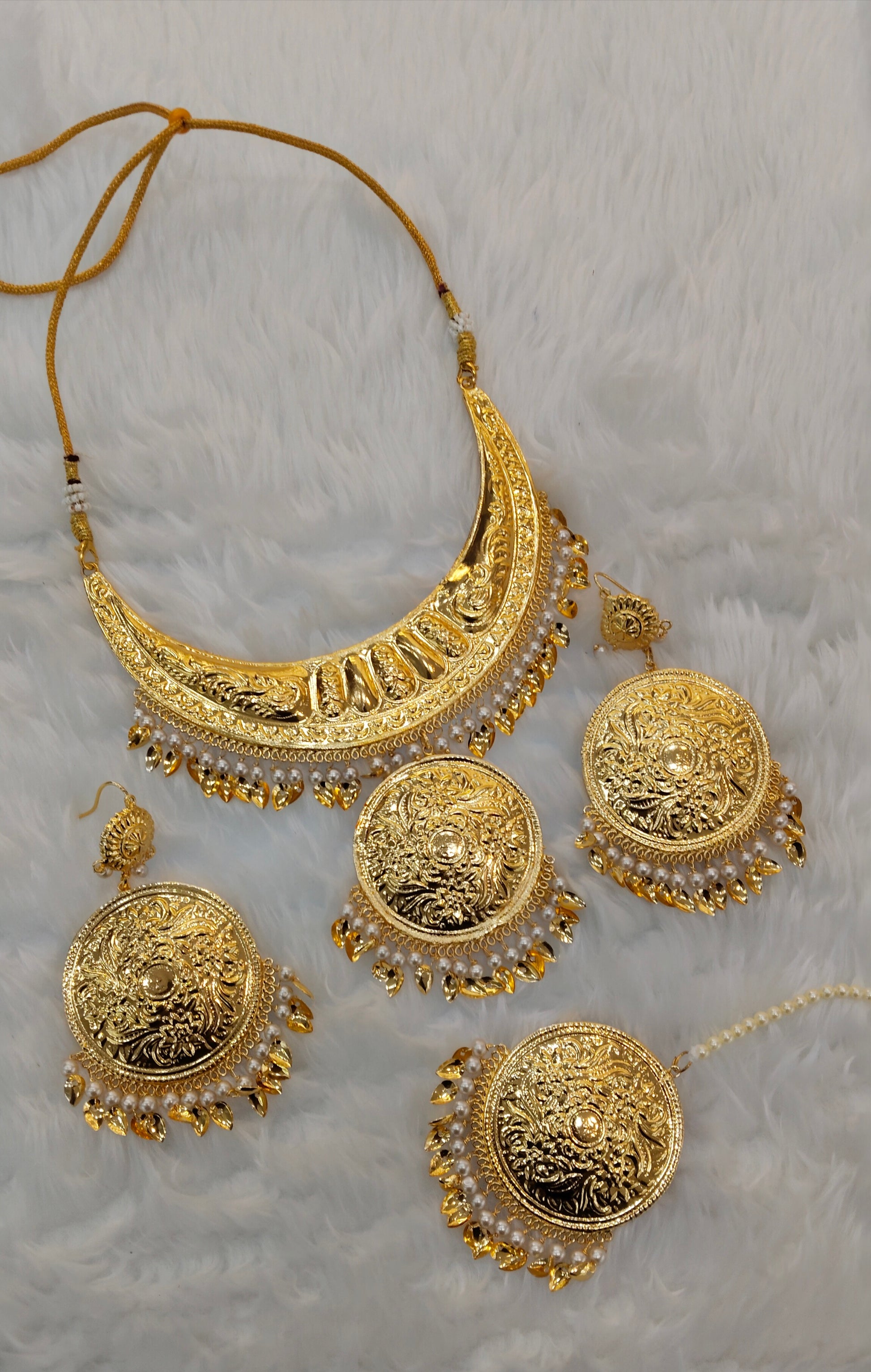 Gold Jadau Punjabi Style Necklace Indian Jewellery Sultan Set
