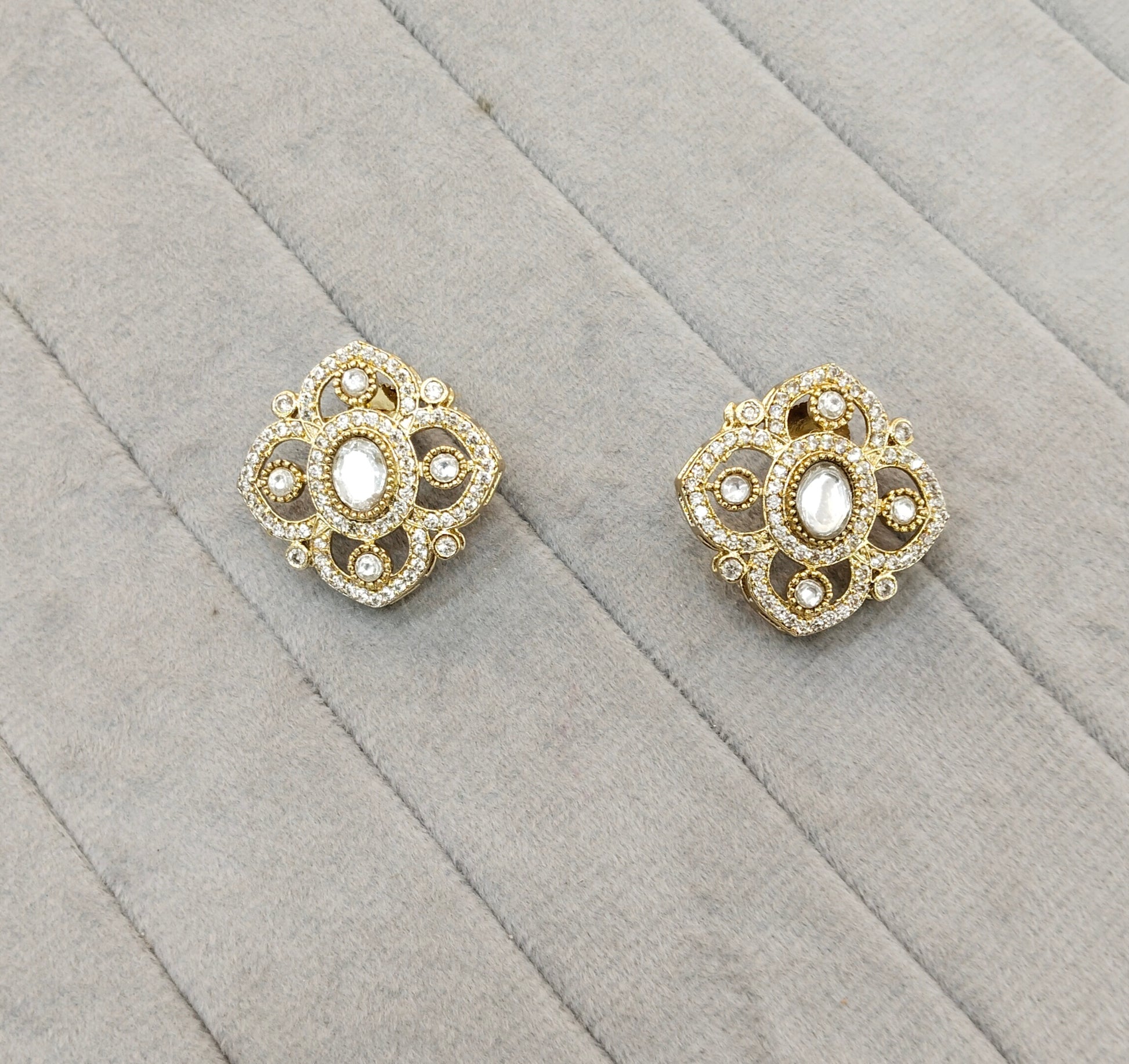 Gold Moissanite Kundan Bollywood Indian Dhillon Earrings