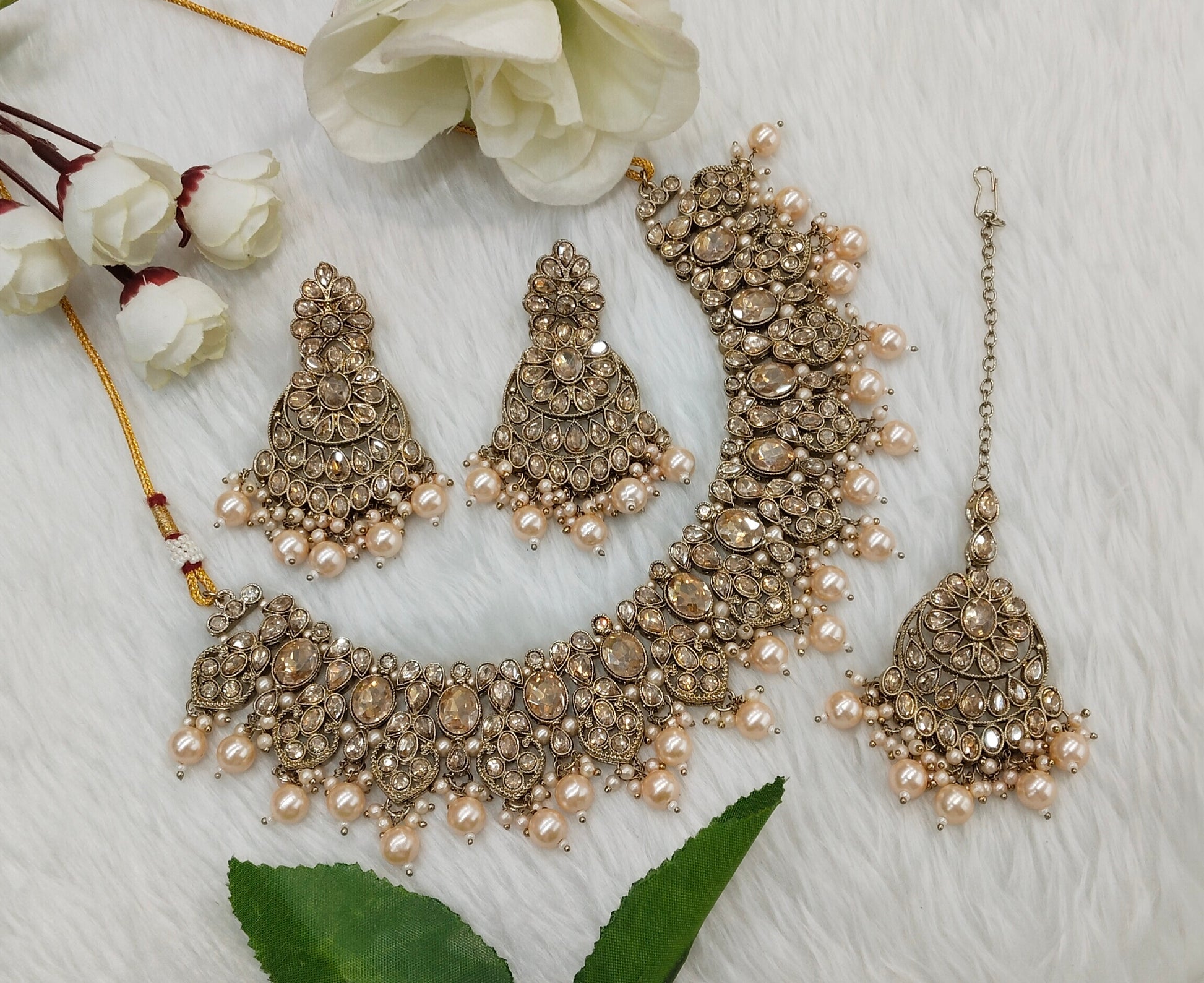 Indian Jewellery Pink Kundan Choker Set/ kundan choker hello Set