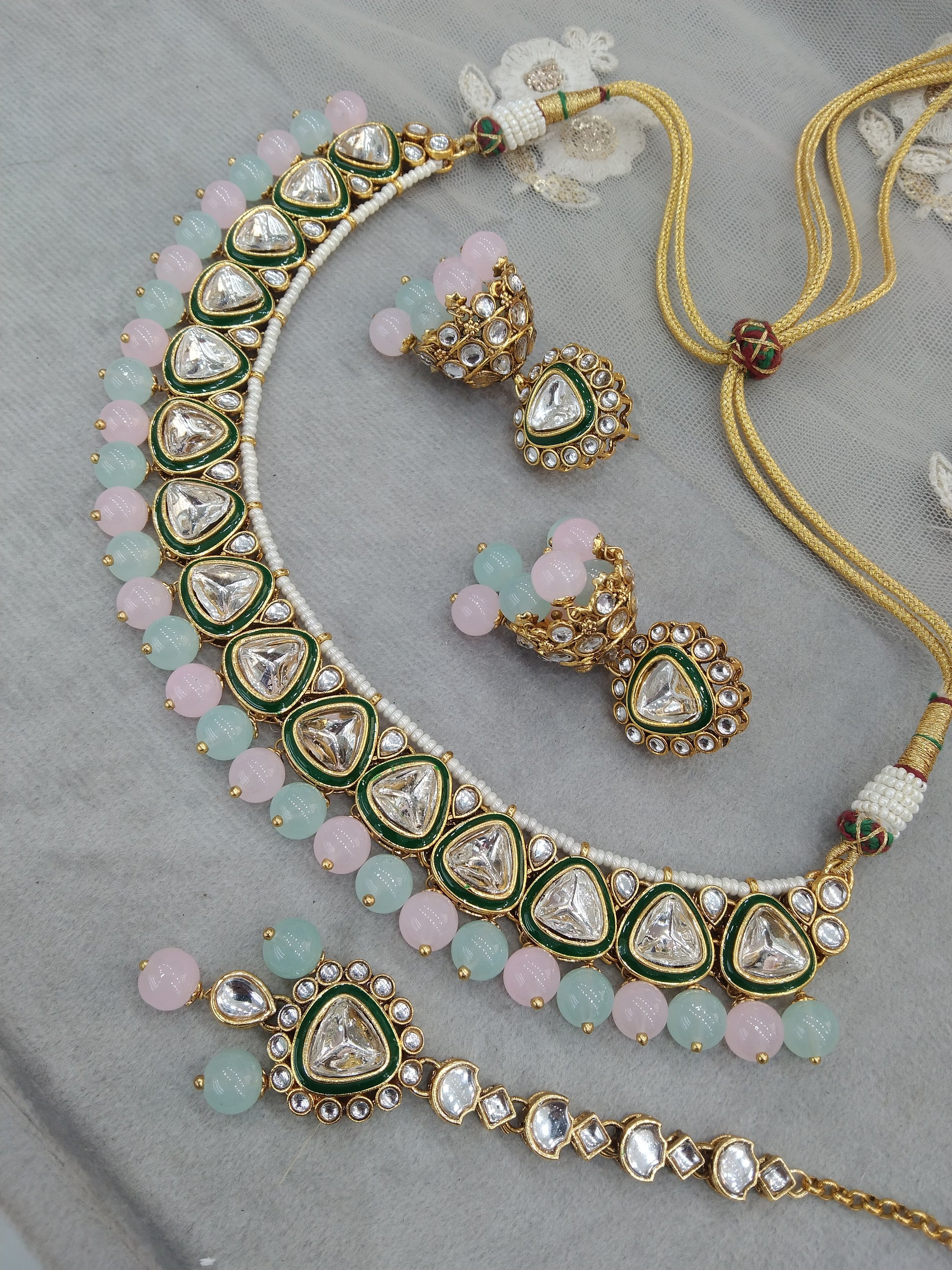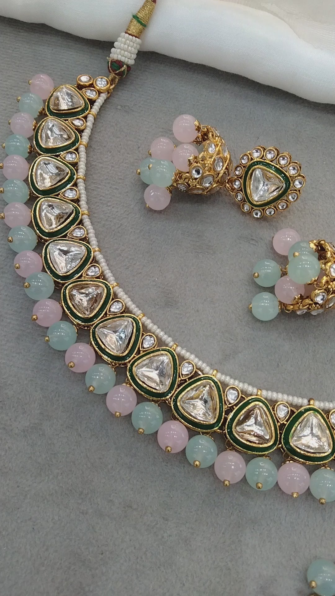Gold mint pink Kundan necklace Set/ Gold kundan Indian jewellery kundan runes sets