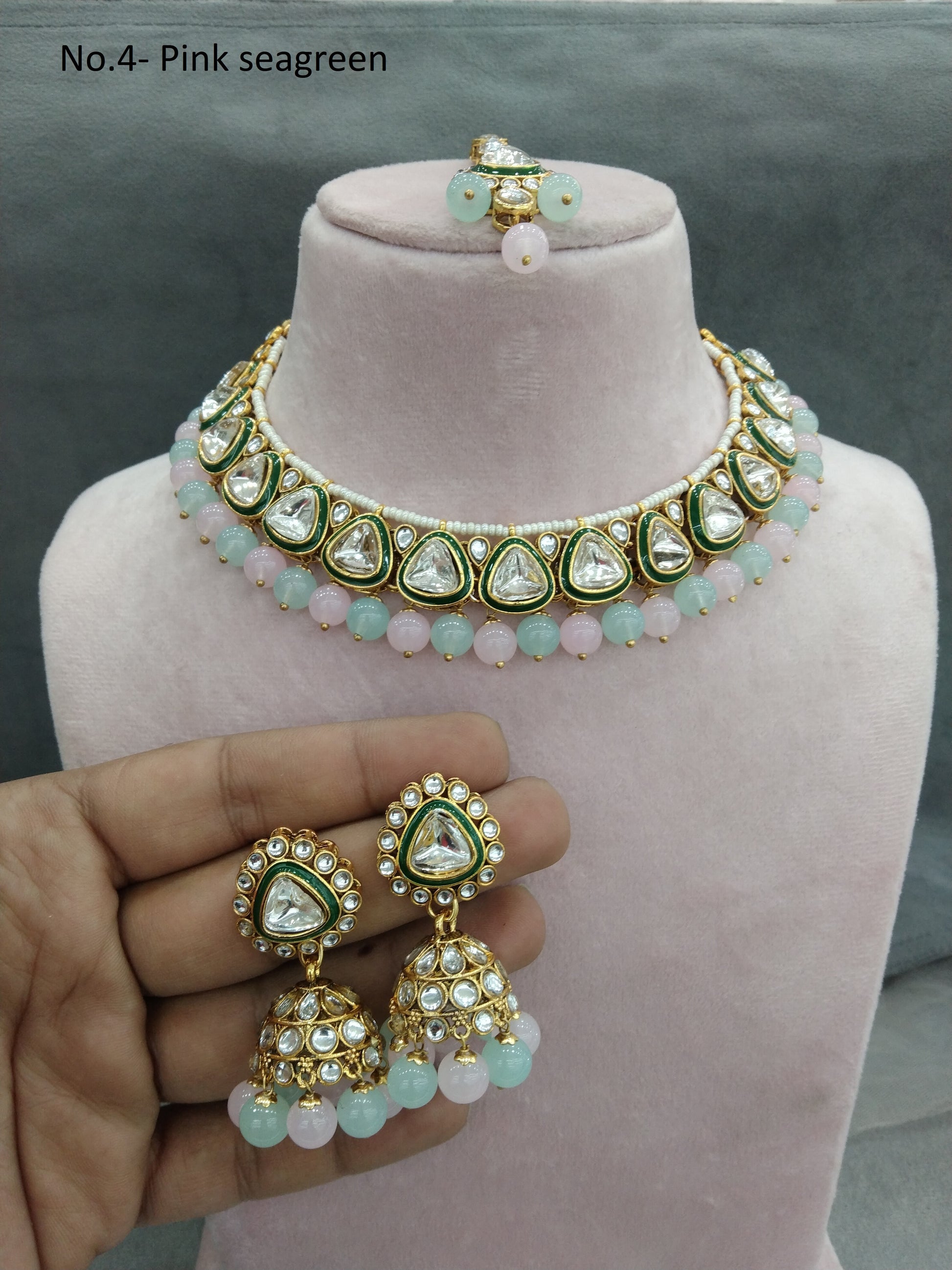 Indian Jewellery Pink Kundan Choker Set/ kundan choker hello Set