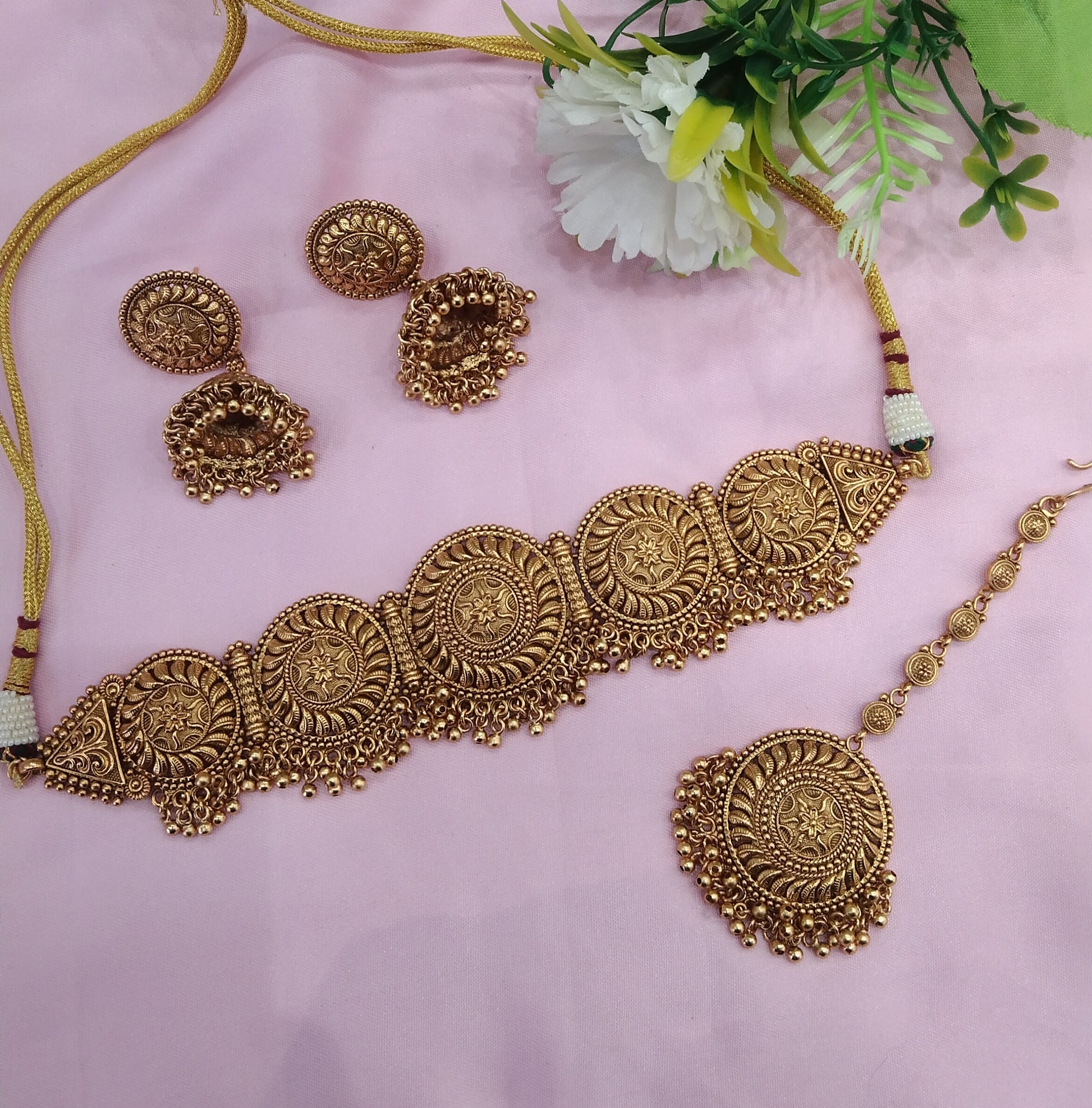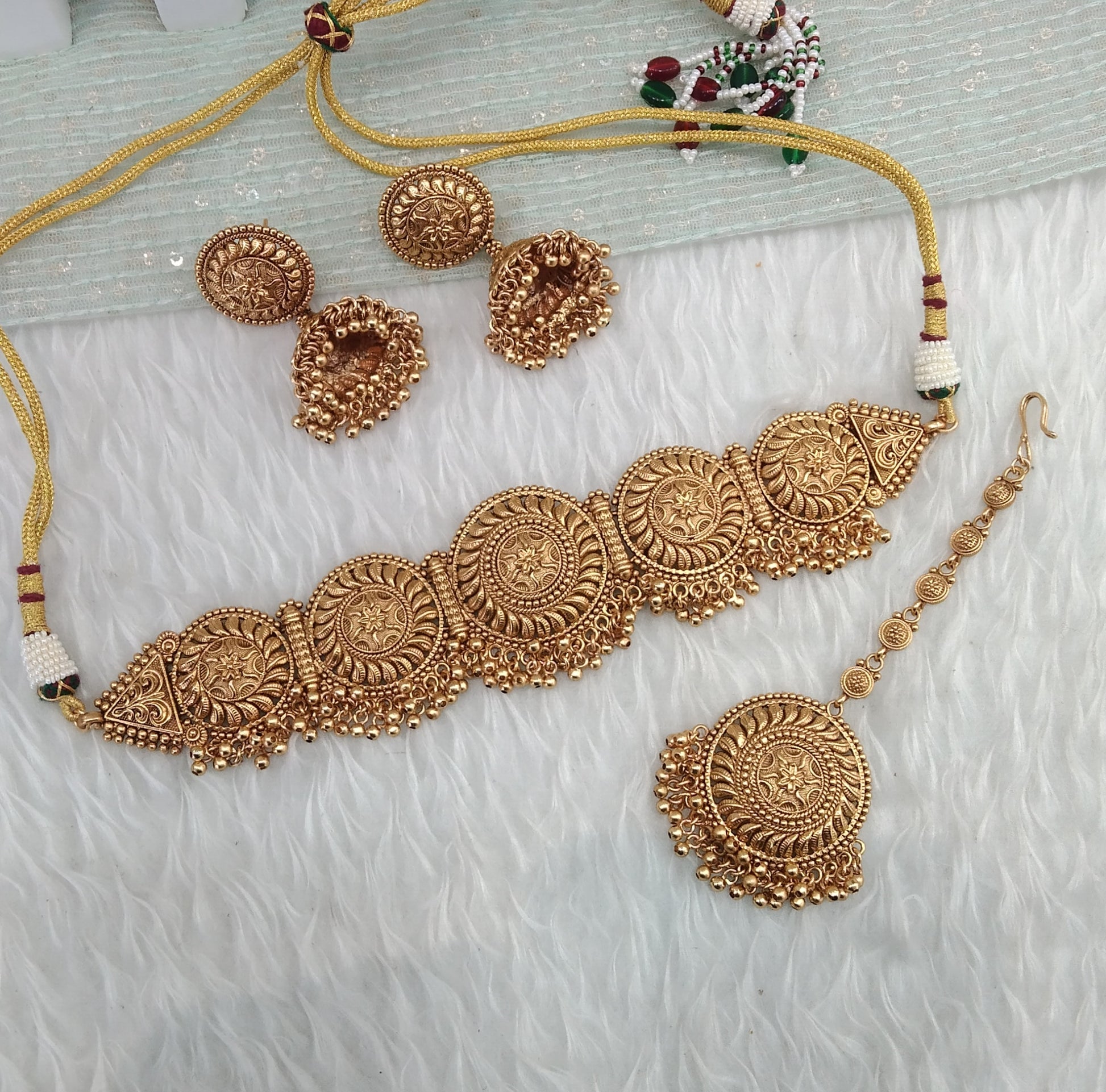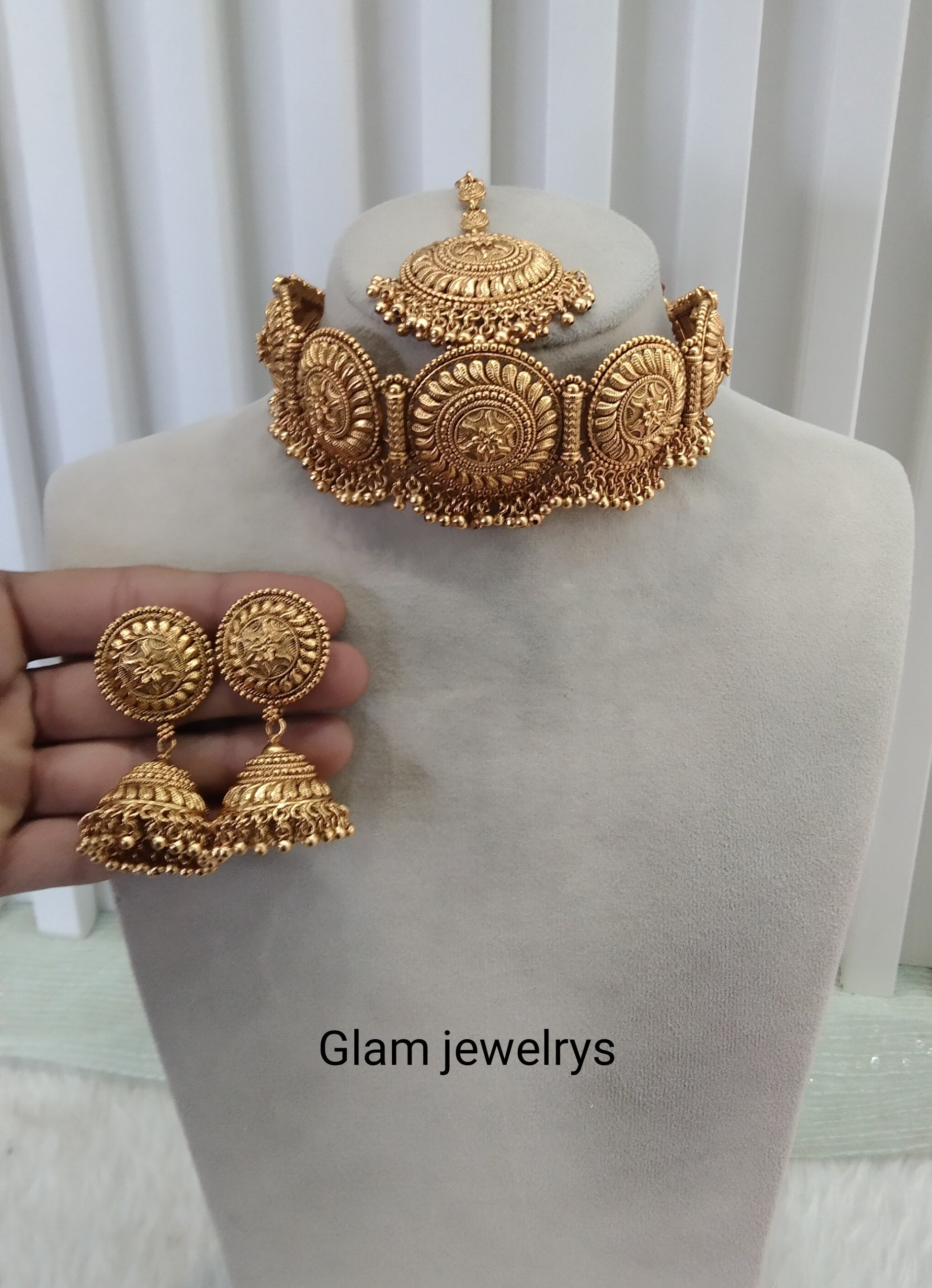 * Gold Finish Polki Choker Set with earrings as shown in the pic.