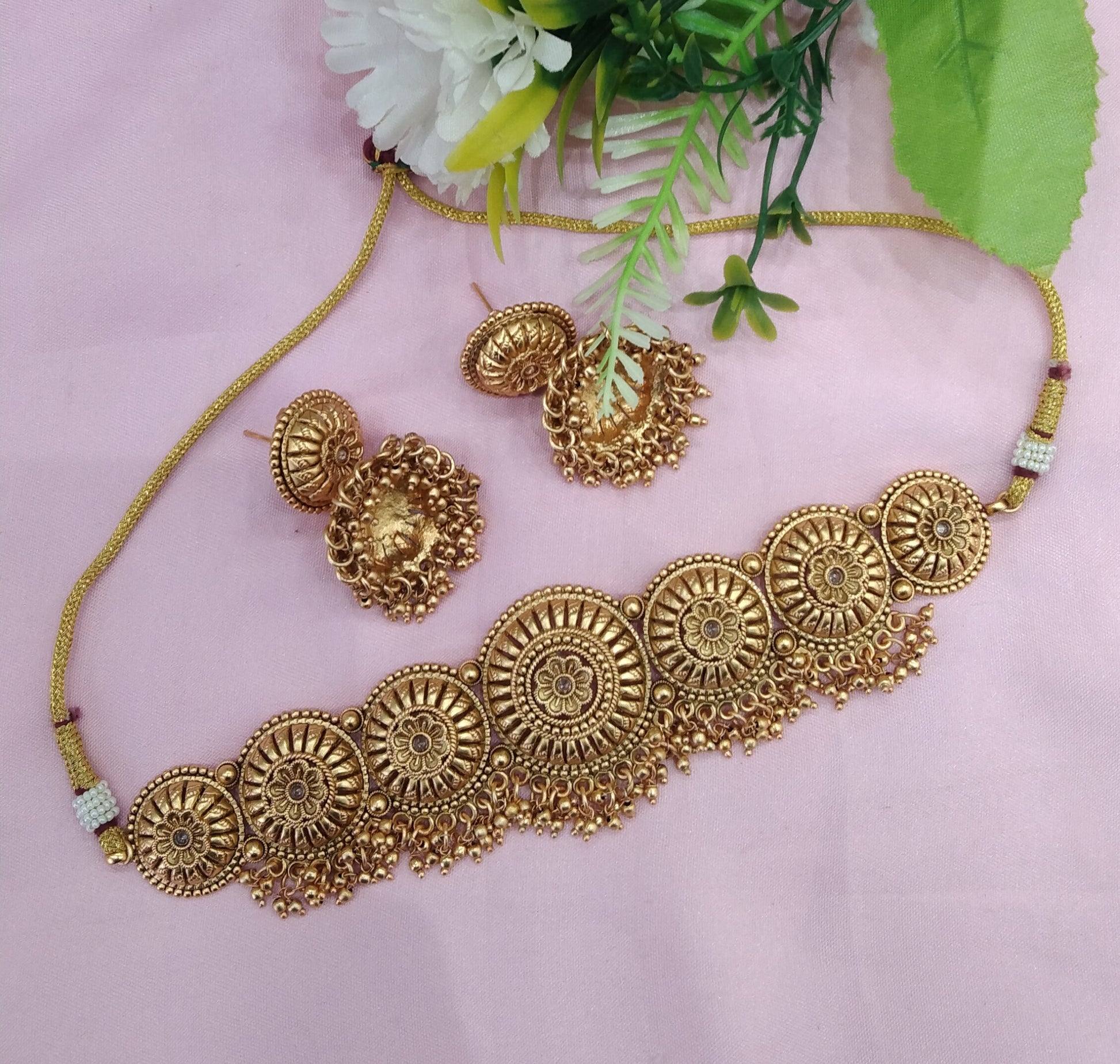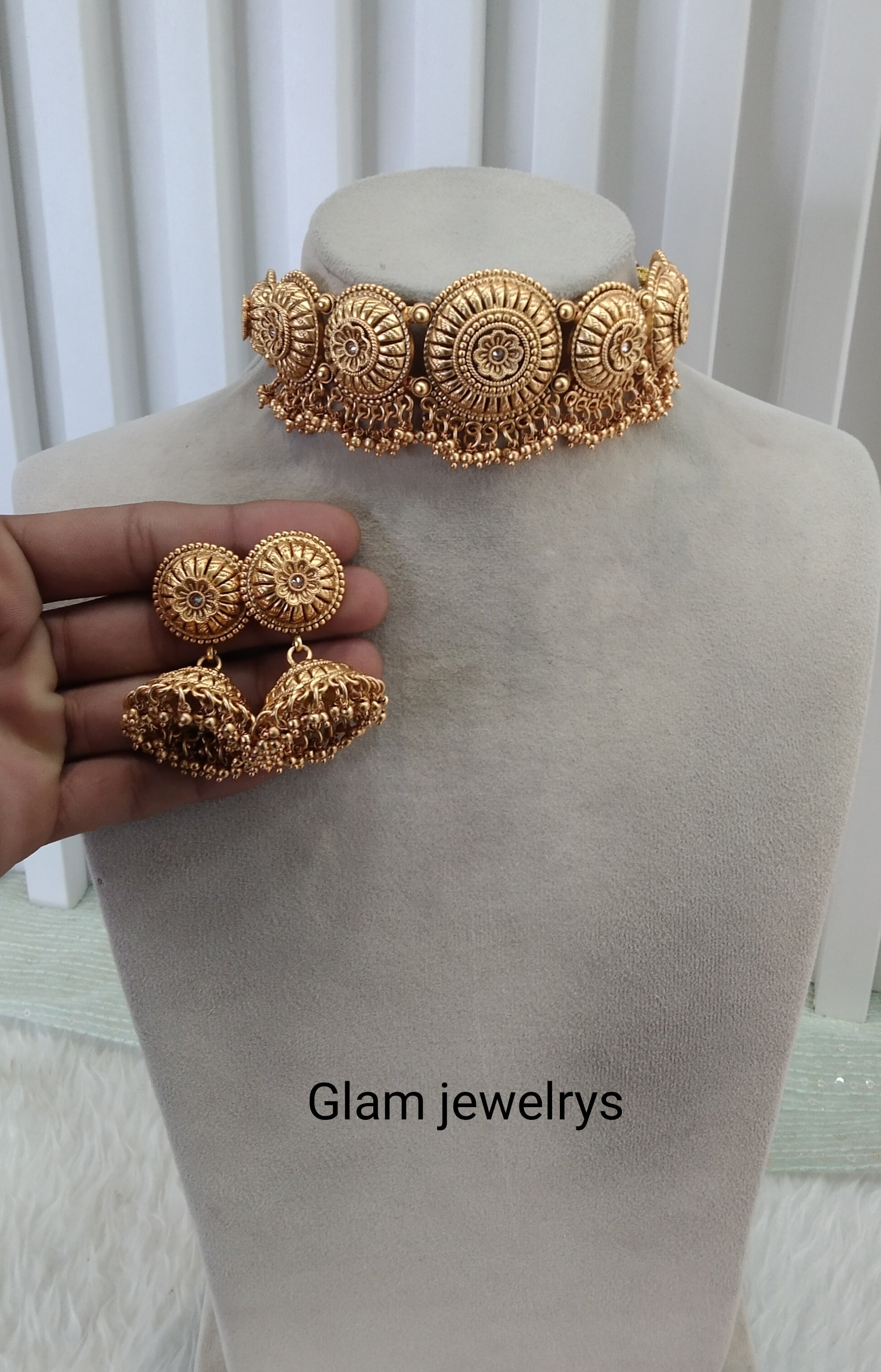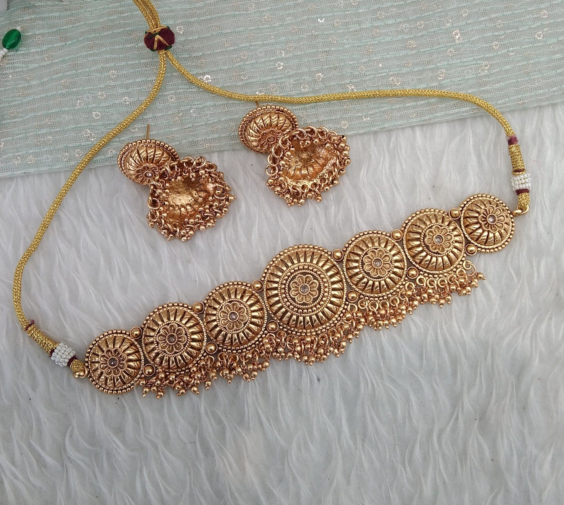 * Gold Finish Polki Choker Set with earrings as shown in the pic.