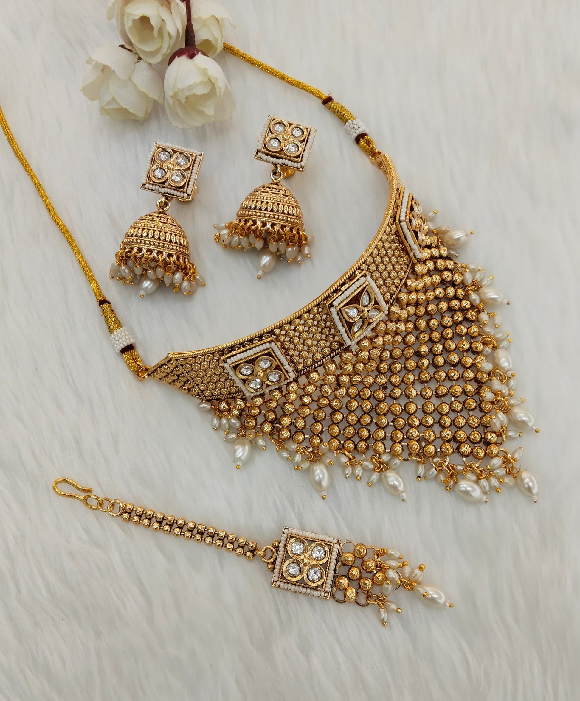 * Gold Finish Polki Choker Set with earrings as shown in the pic.