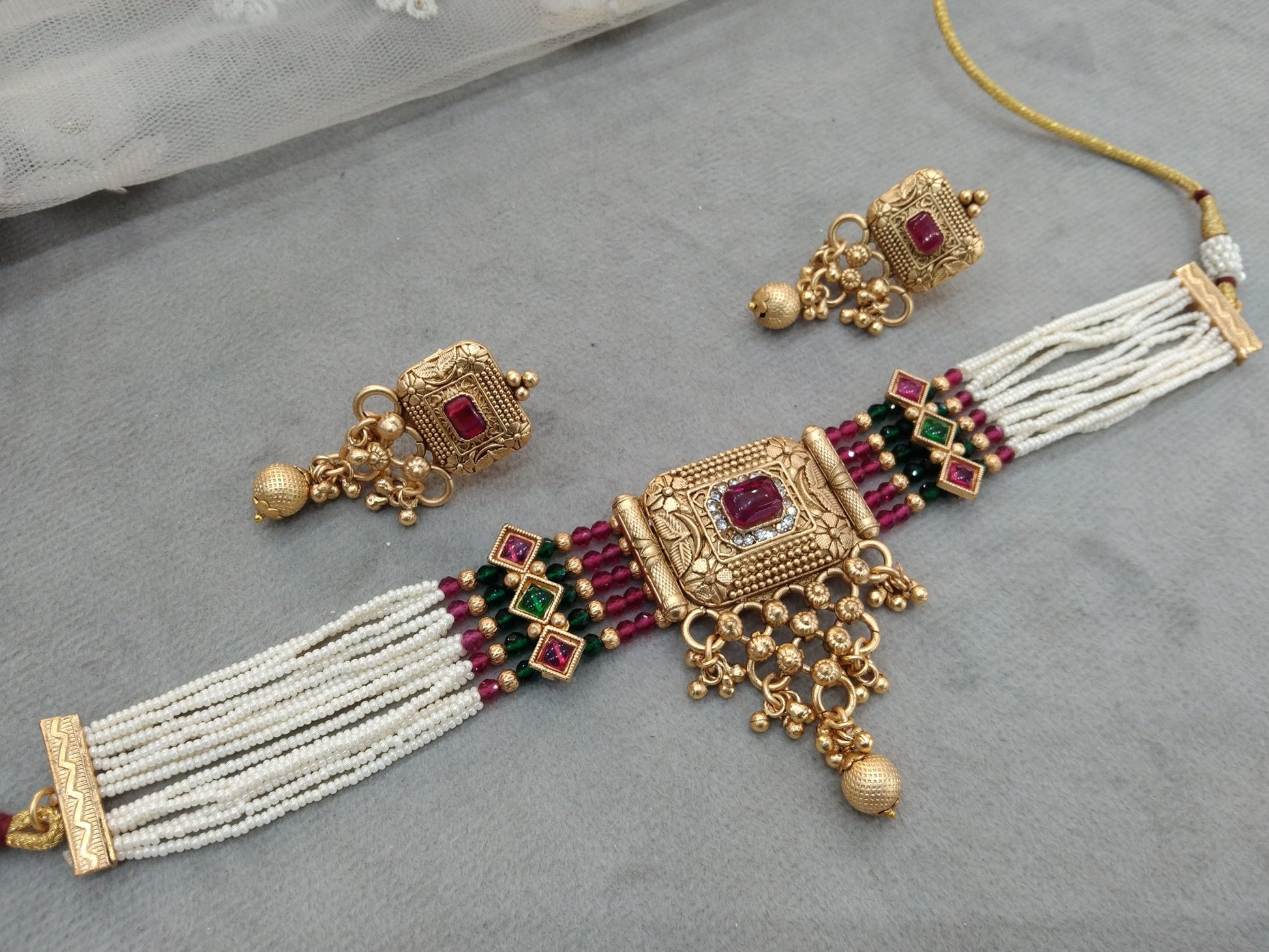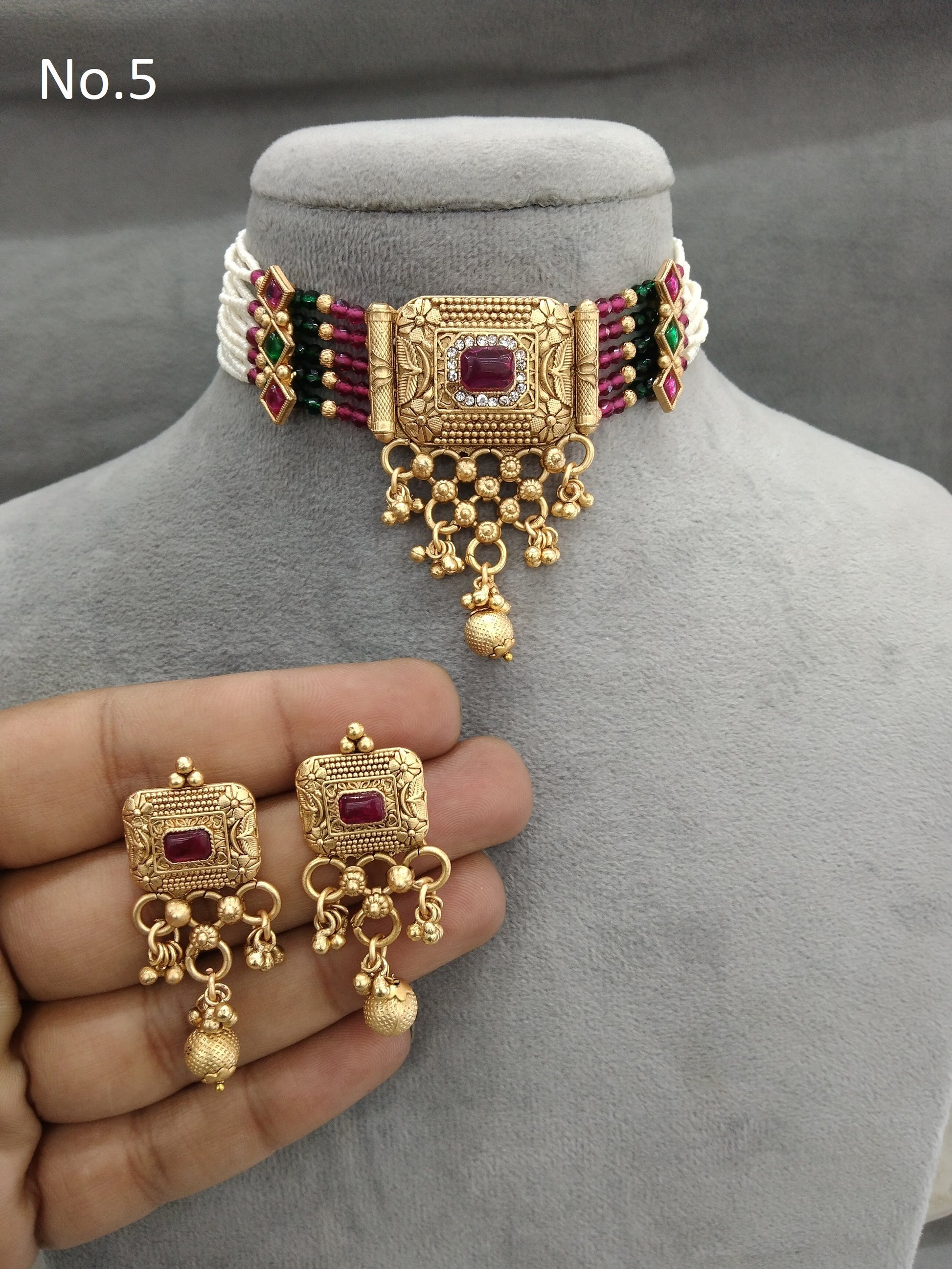 *Light weight gold choker necklace Set with earrings as shown in the pic.