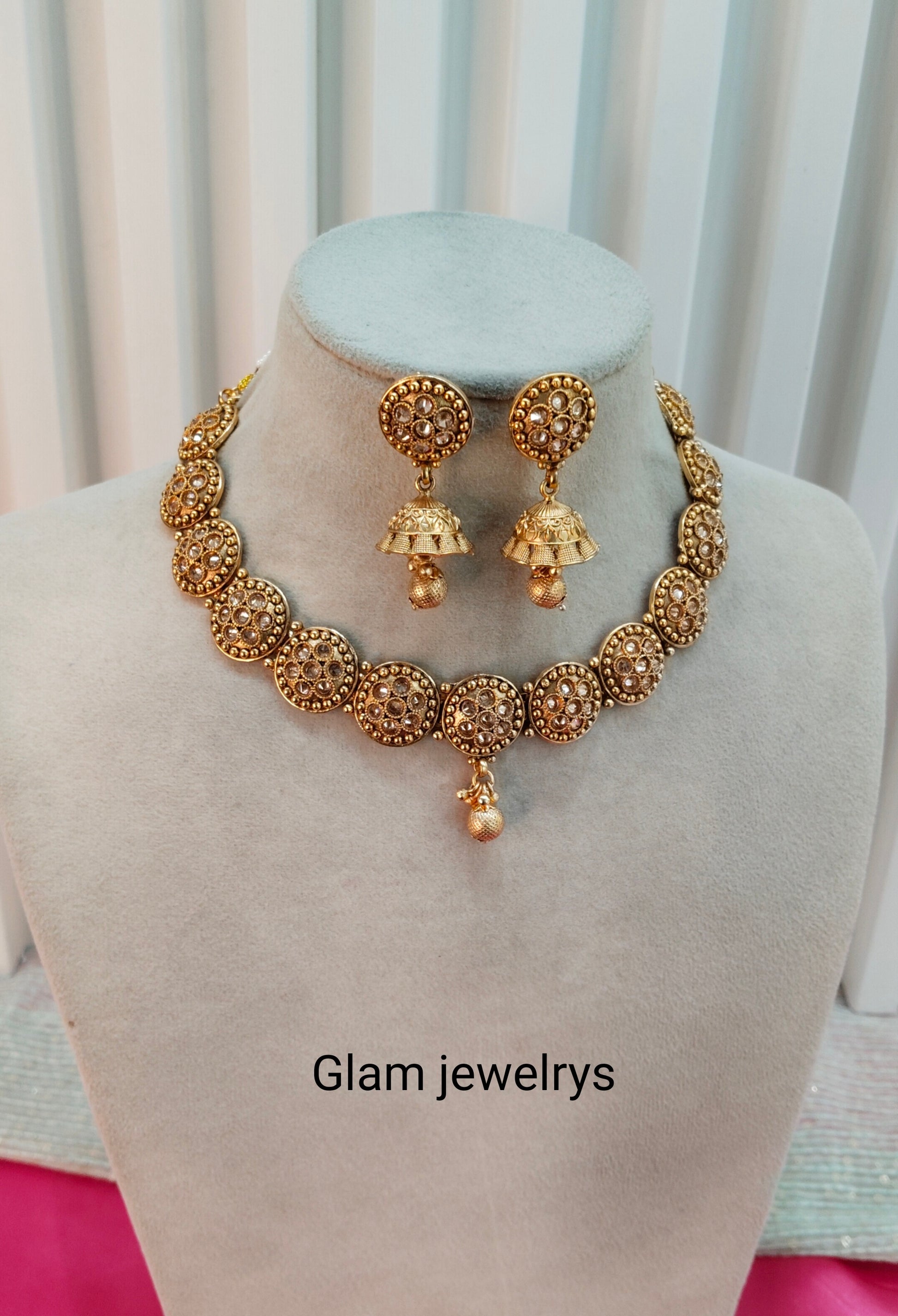 Gold Polki Jhumki Necklace Indian Jewellery Studio Set