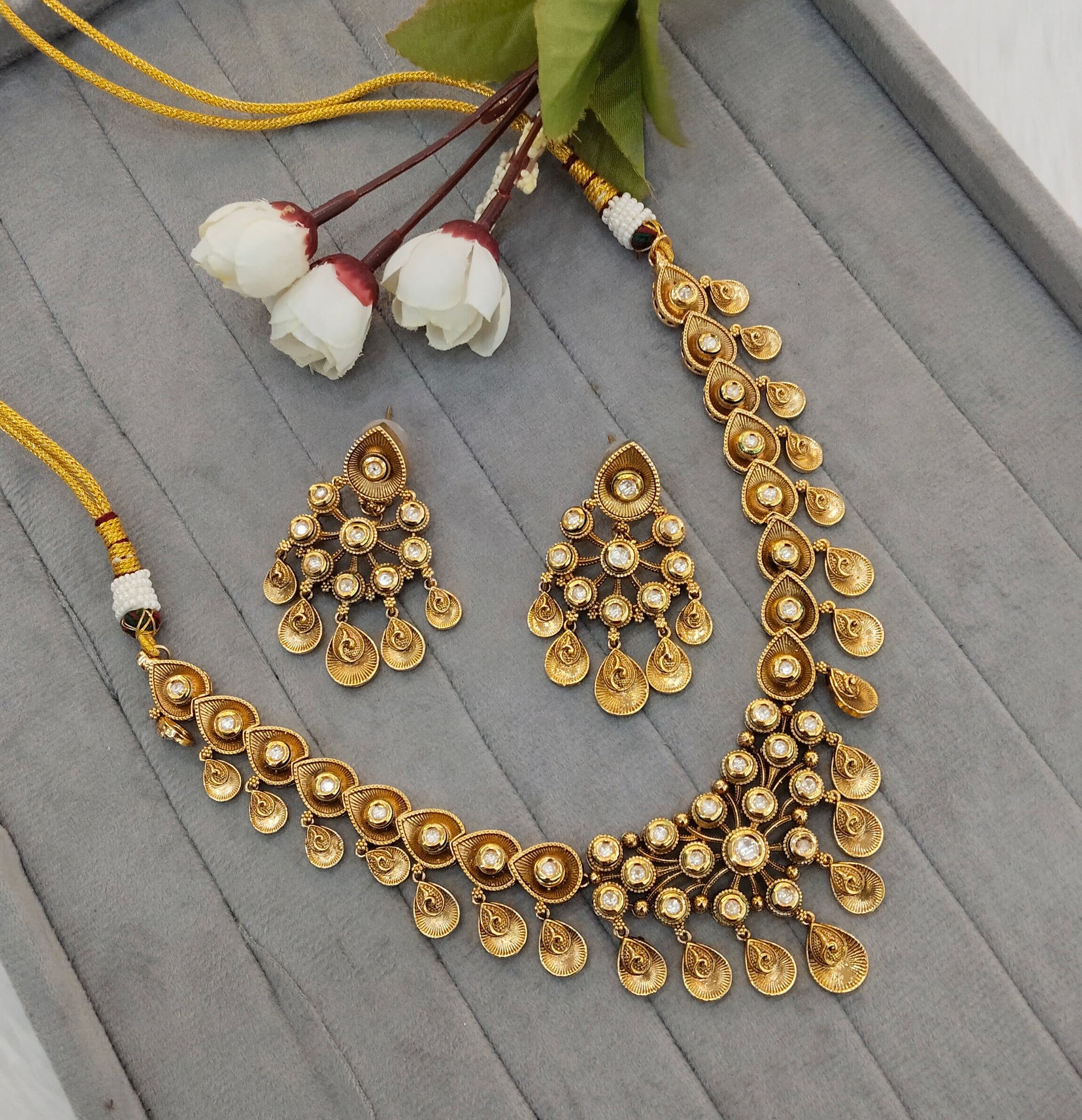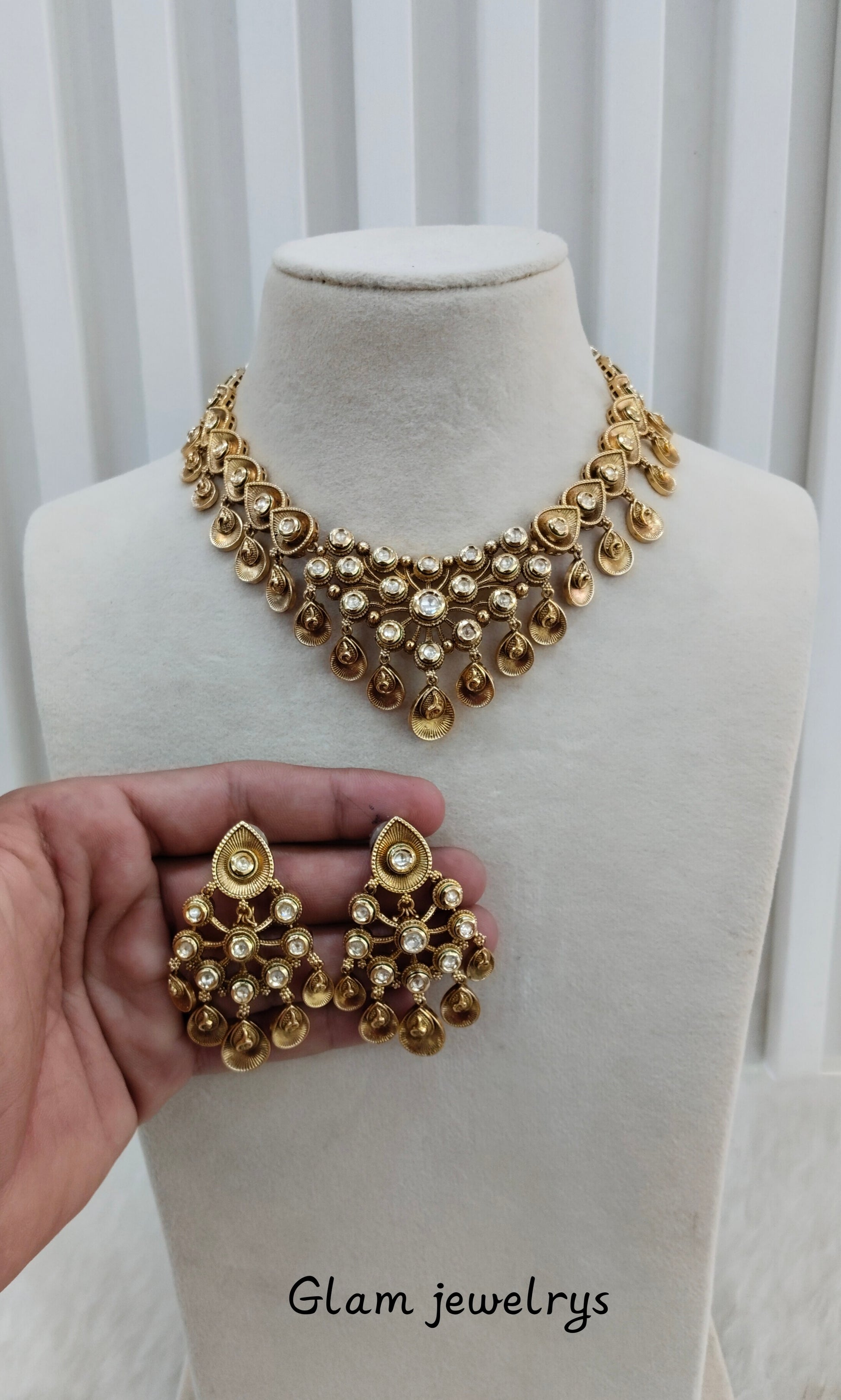 * Gold Finish Polki Necklace Set with earrings as shown in the pic.