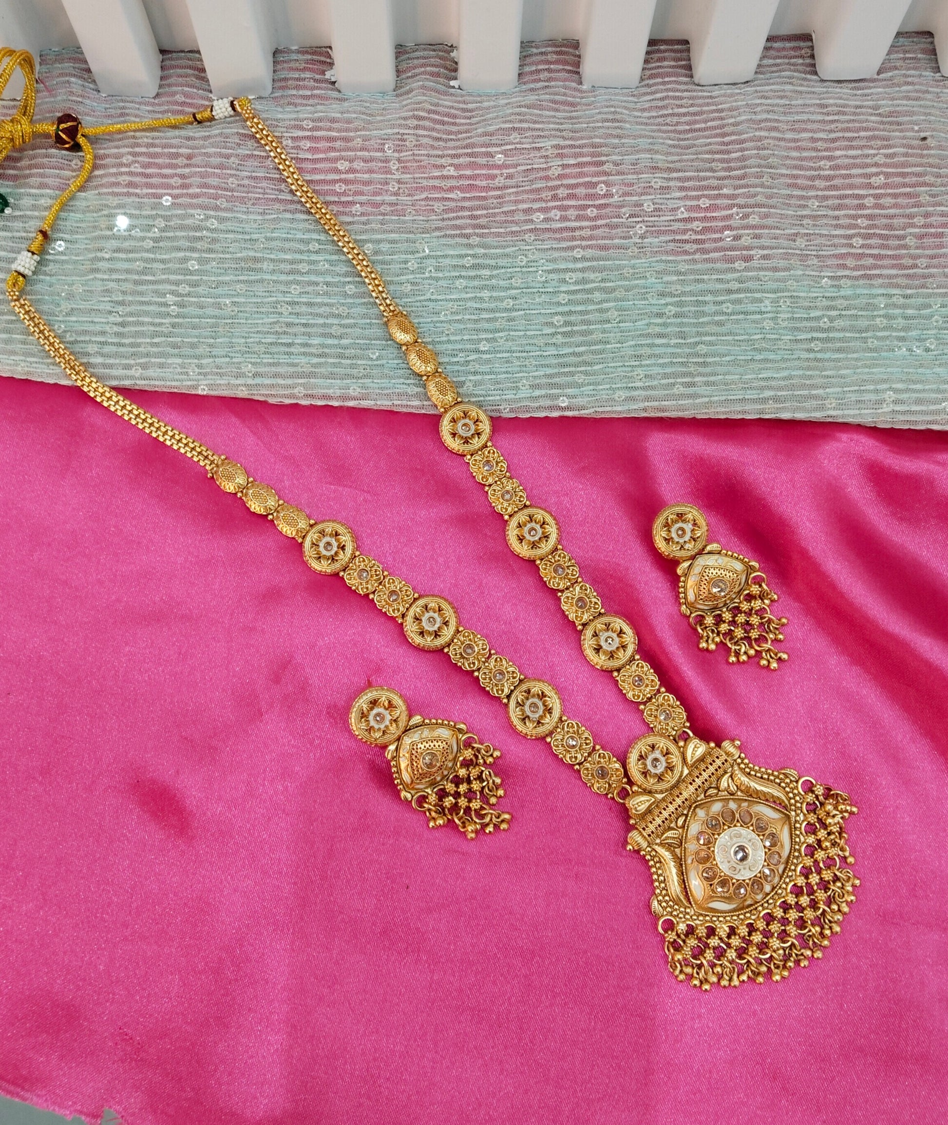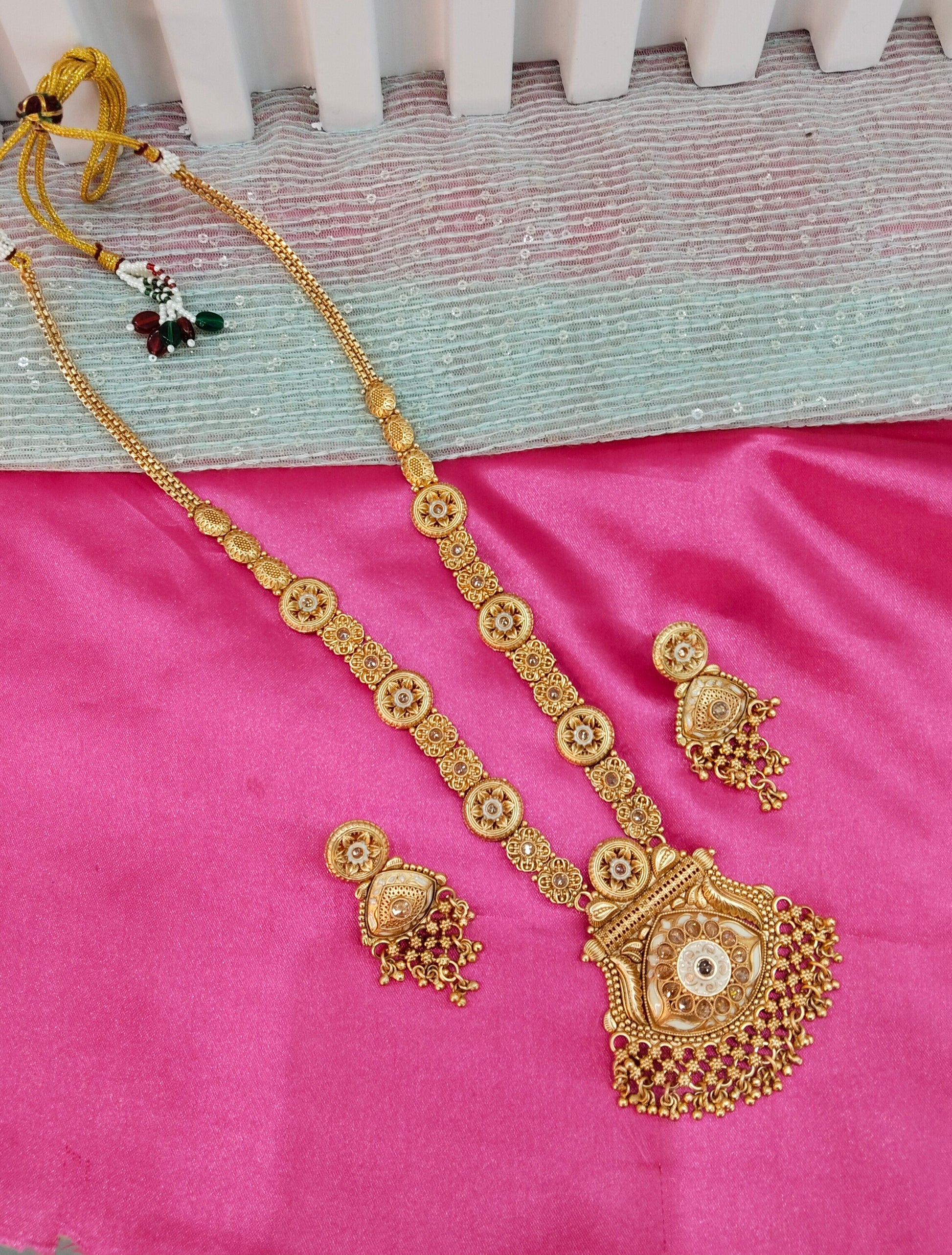 Gold Polki Long Rani Haar Necklace Indian Jewellery Set