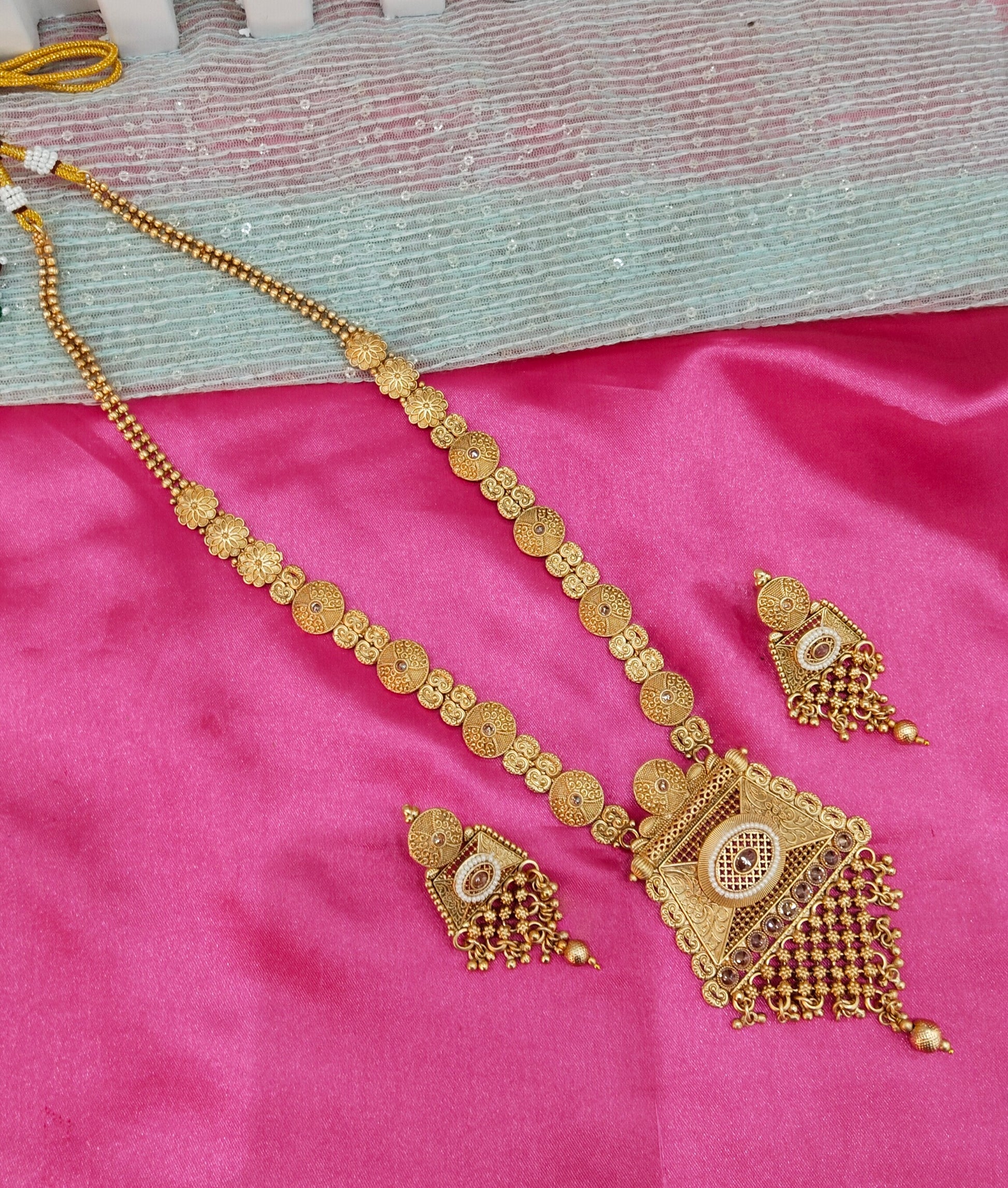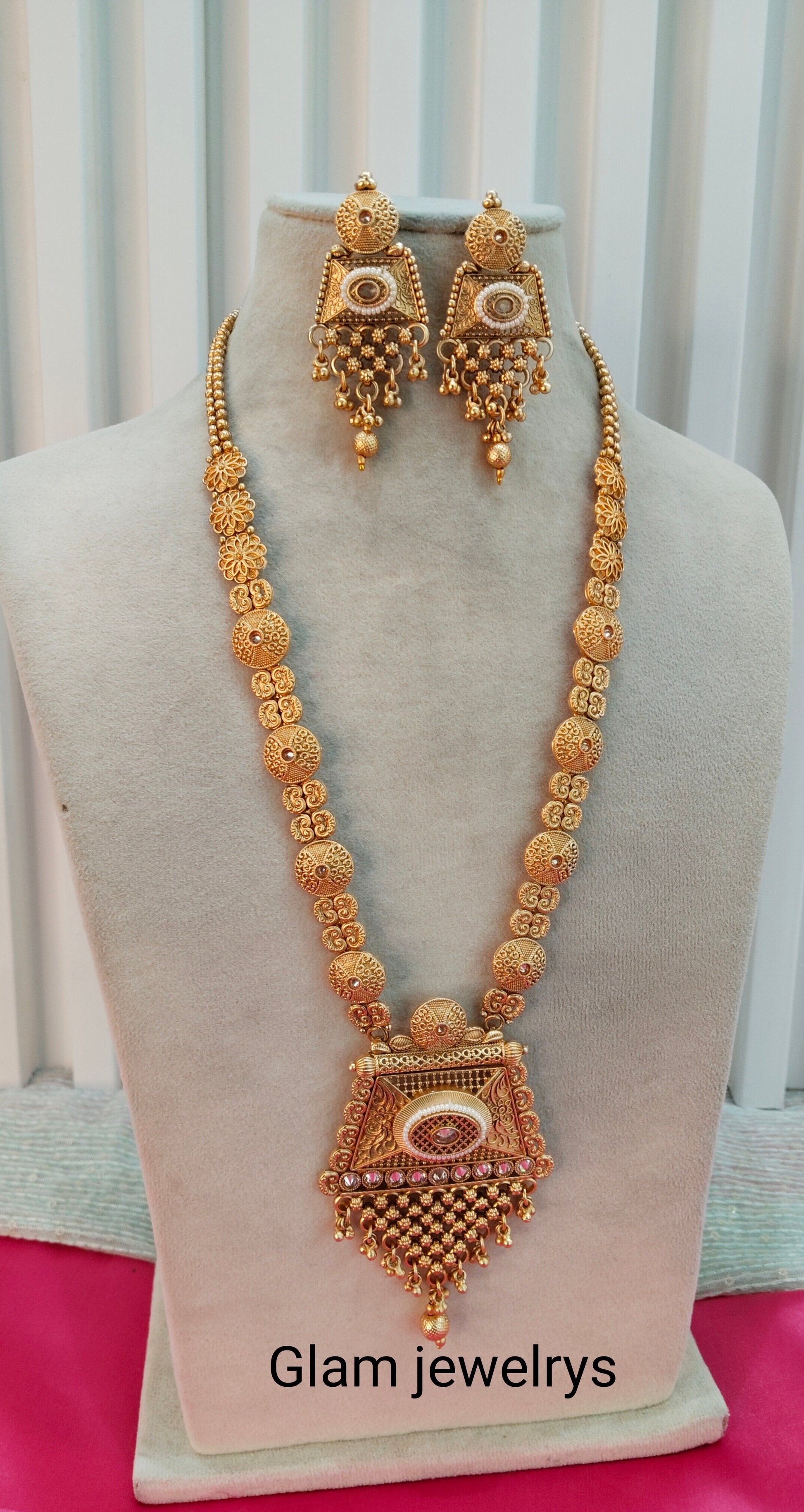 Gold Polki Long Rani Haar Necklace Indian Jewellery Set