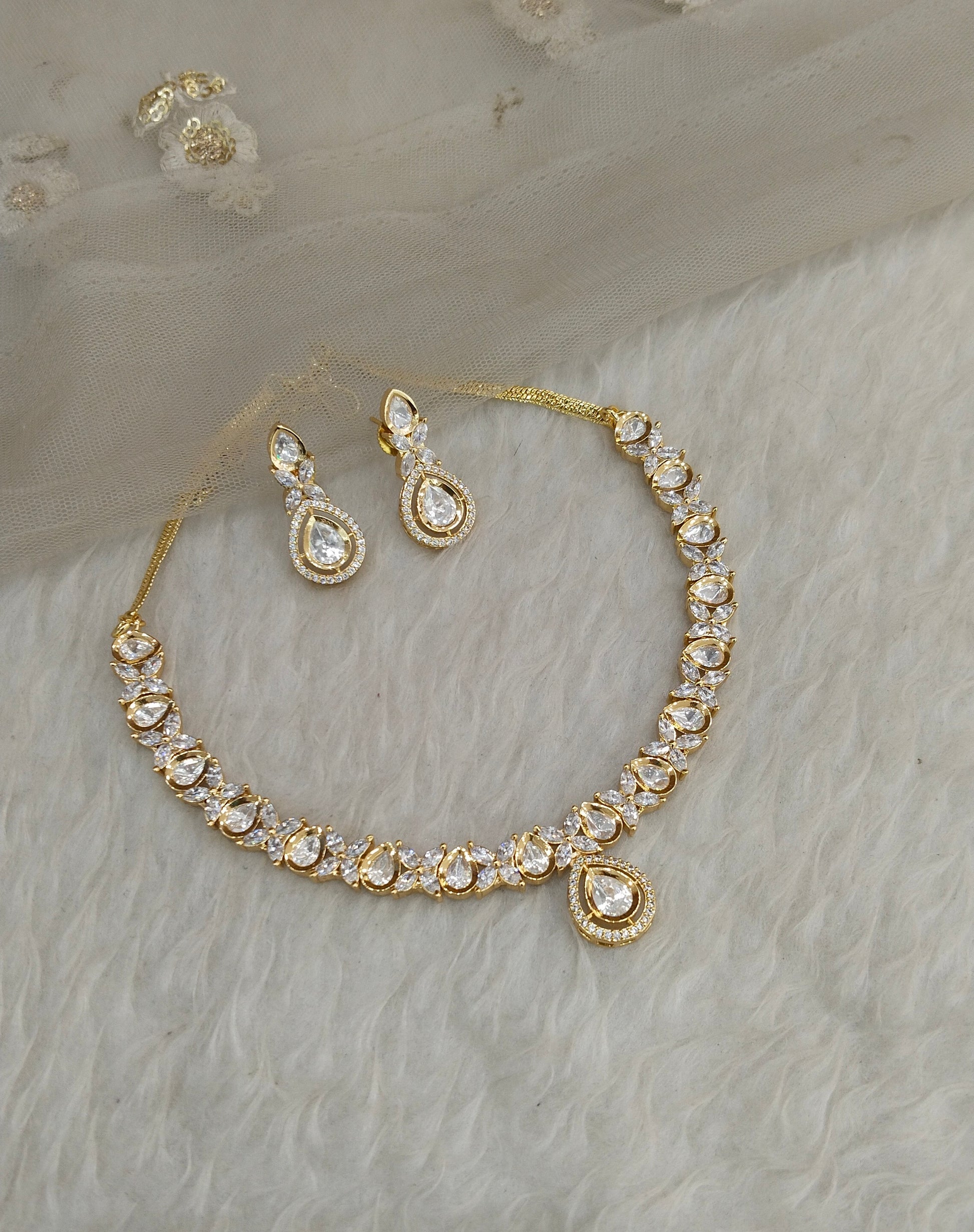 *Gold Polki Necklace set with earrings