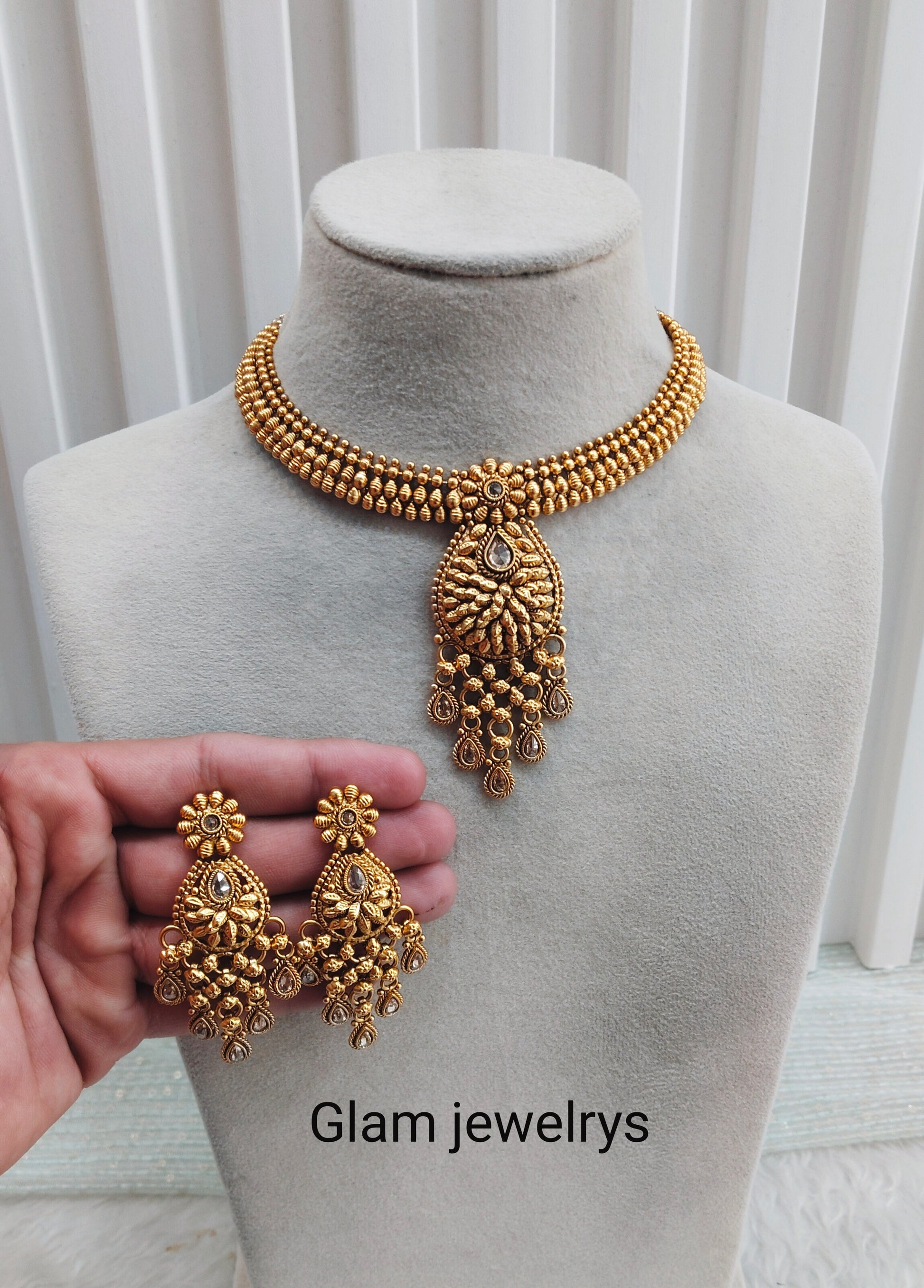 *Gold Polki Necklace set with earrings