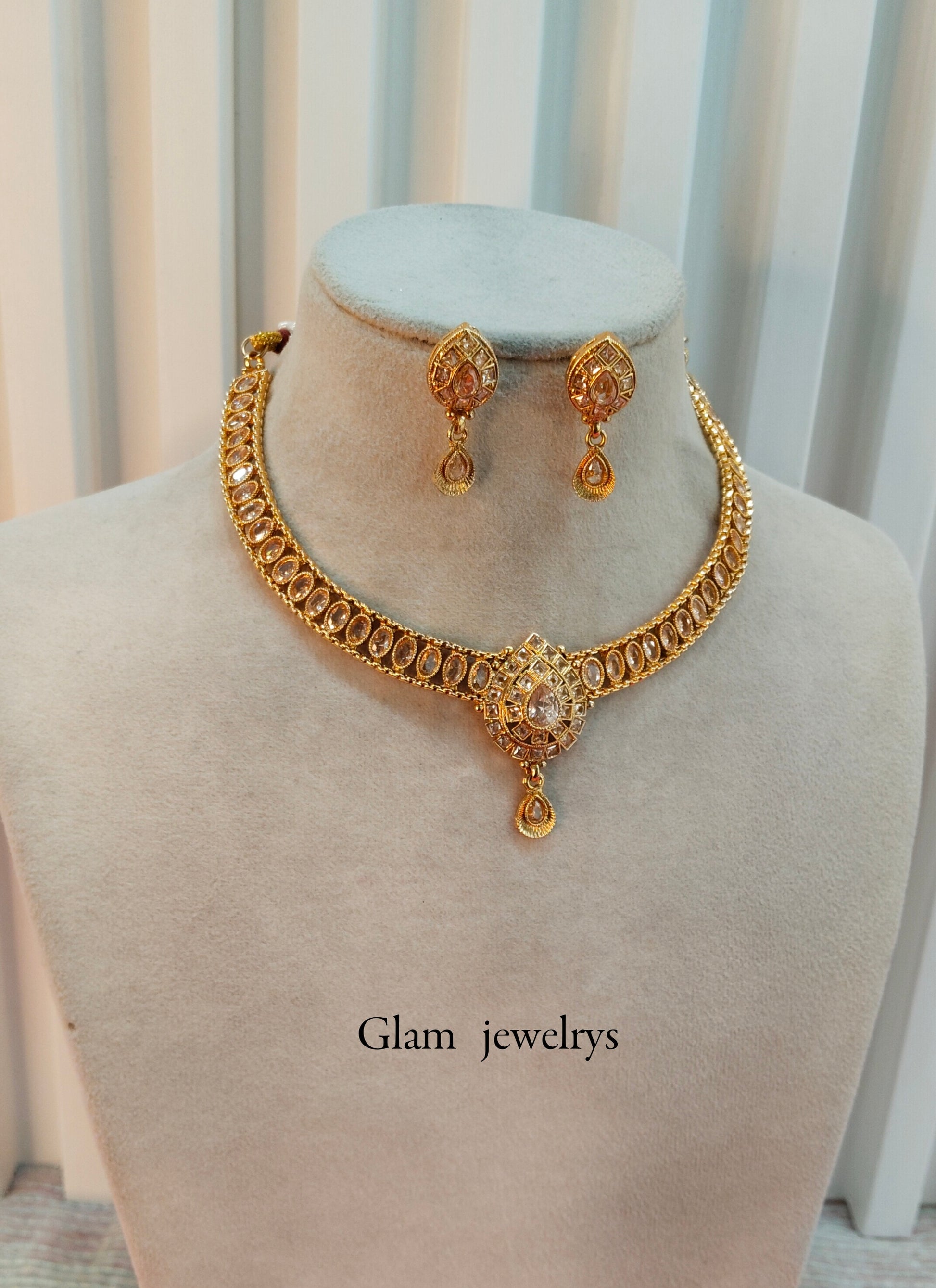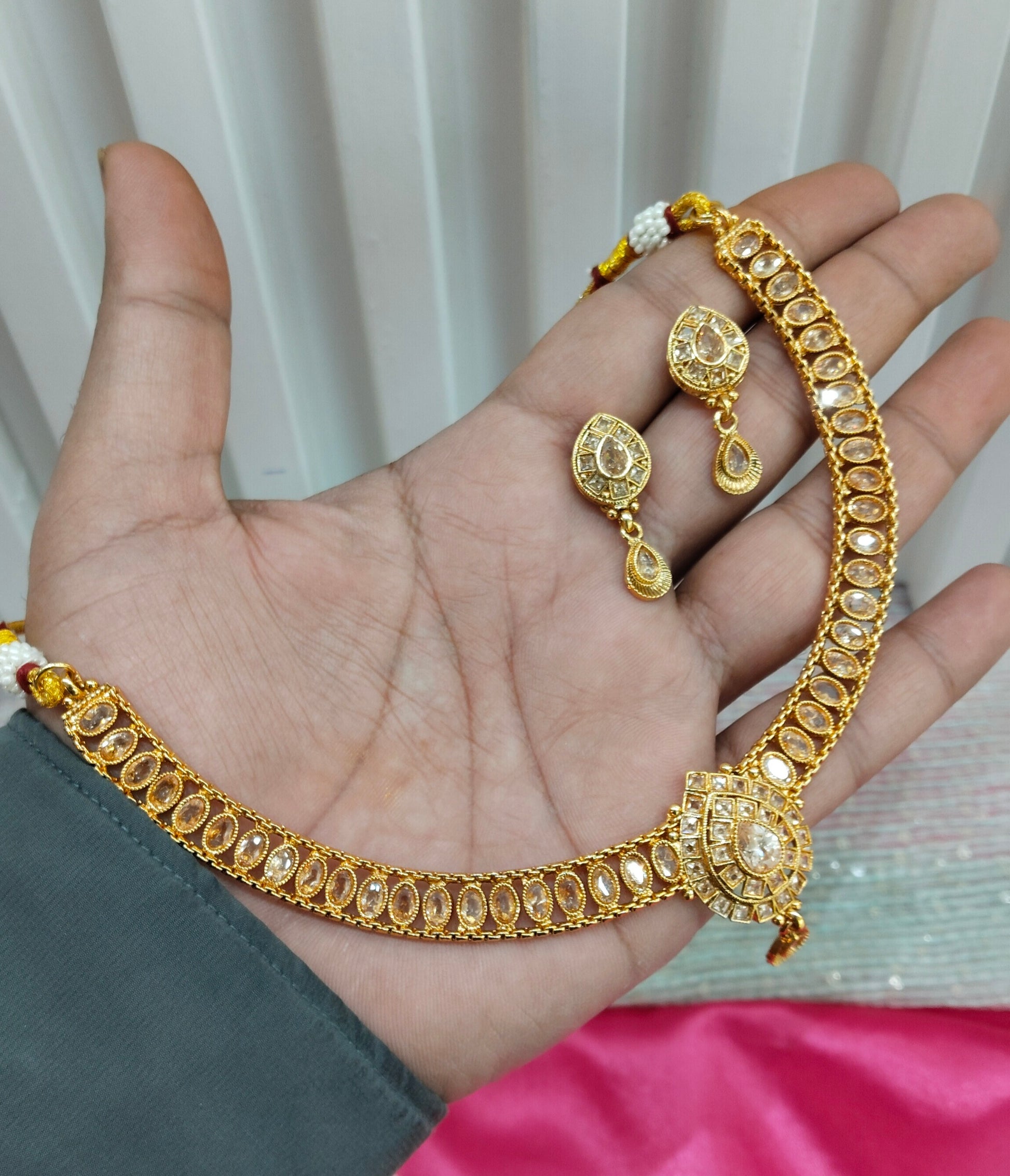 Indian Jewellery Pink Kundan Choker Set/ kundan choker hello Set