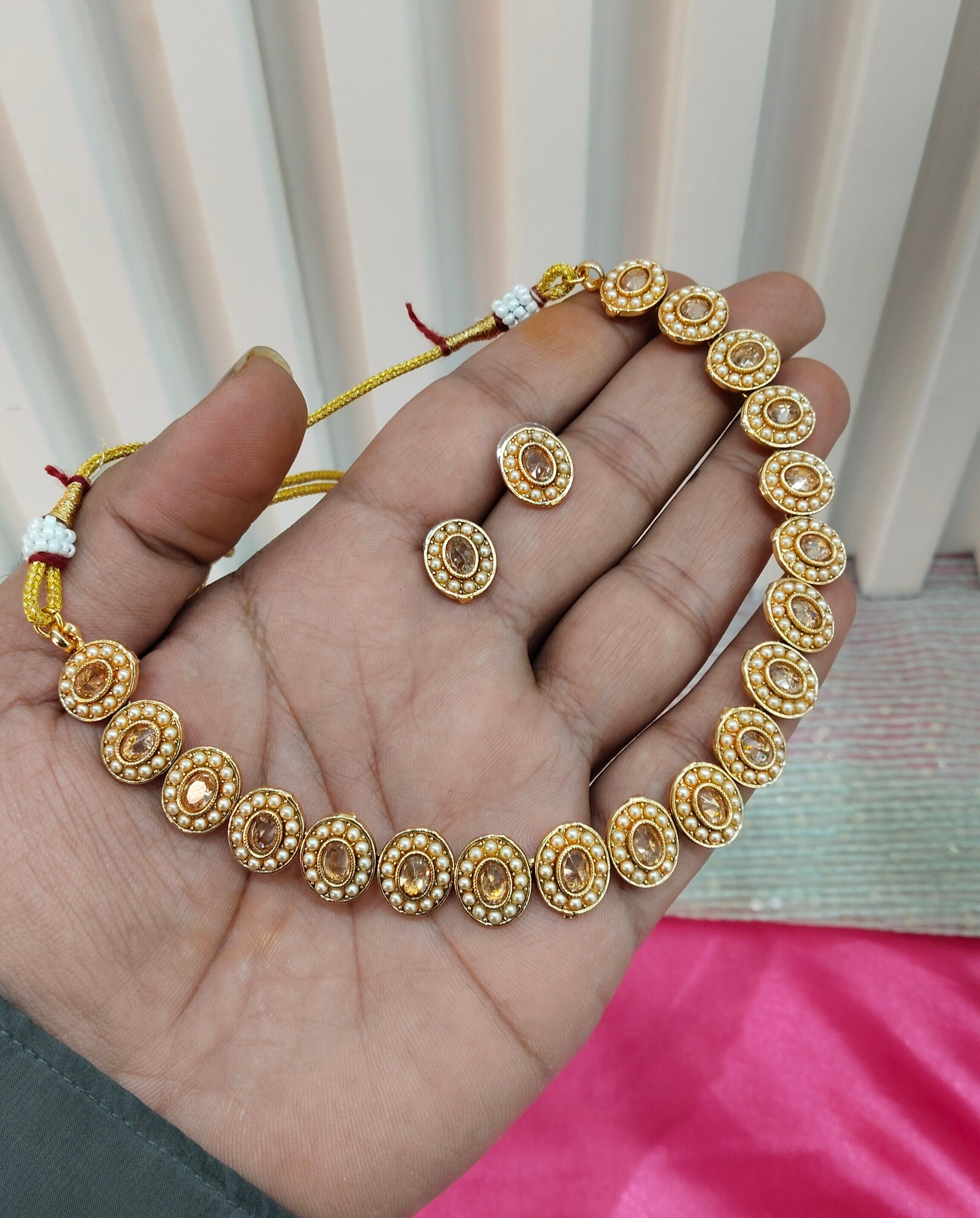 Indian Jewellery Pink Kundan Choker Set/ kundan choker hello Set